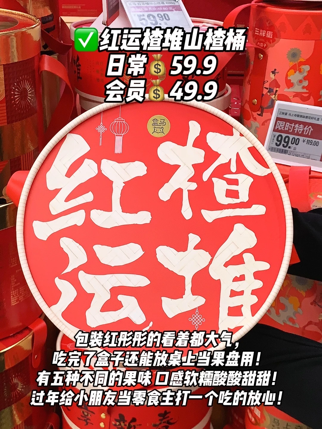 ✅红运楂堆山楂桶:包装红彤彤很大气,吃完了盒子还能当果盘用!里面有五种不同的山楂果味,配料干净,过年给小朋友吃主打一个吃的放心!