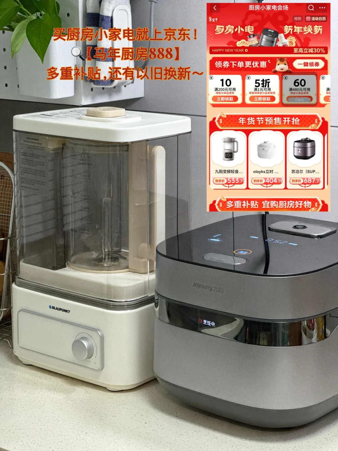 年夜饭的幸福感一半藏在烟火气里,另一半就靠我厨房里神仙小家电的助攻!以前张罗年夜饭,光是焖饭和备饮品就忙到脚不沾地,今年早早做了功课,买钛材质的厨房小家电,有了九阳0涂层电饭煲和蓝宝钛刀破壁机,轻松拿捏一桌体面!