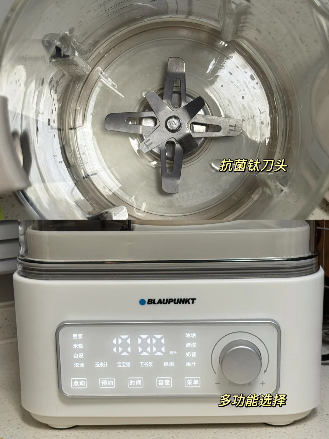 省下来的洗锅时间,刚好交给蓝宝钛刀破壁机解锁饮品!以前做豆浆要泡豆、过滤,还总有渣感,蓝宝这款用的是抗菌钛刀头,能有效抑菌而且做出来的豆浆口感非常细腻。之前做个杂粮糊费时间又费力。现在直接把食材一股脑丢进去,一键启动就不用管了!干豆直打也能细腻无渣,杂粮糊绵密香浓,大容量够全家分享,做完还能蒸汽高温自清洁喷洗刀头,彻底解放双手!