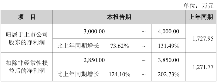 1月26日,科创新源(300731)发布公告,预计2025年度归母净利润为3000万元至4000万元,较上年同期增长73.62%至131.49%。详细数据如下: