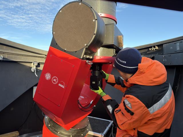 2026年1月,中国第42次南极考察队队员周星宇在南极中山站维护天文望远镜。(受访者供图)