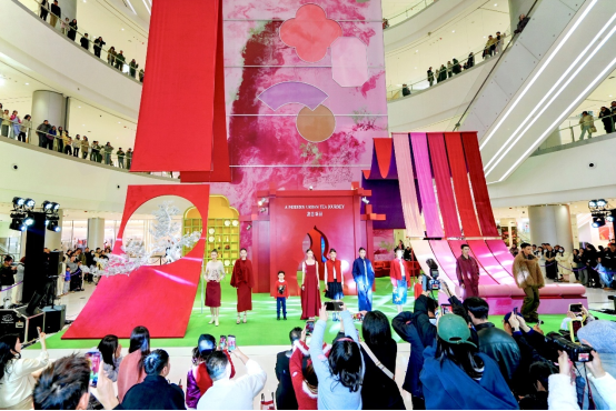 随后举行的“盏中春序2026春夏时尚秀场”,ELLASSAY歌力思、EXCEPTION例外、jnbybyJNBY、Laurèl、LESS、Levi's、POLORALPHLAUREN-KIDS、速写、VGRASS等九家场内品牌,将东方意境与2026春夏风尚趋势相结合,为市民带来精彩服装表演。