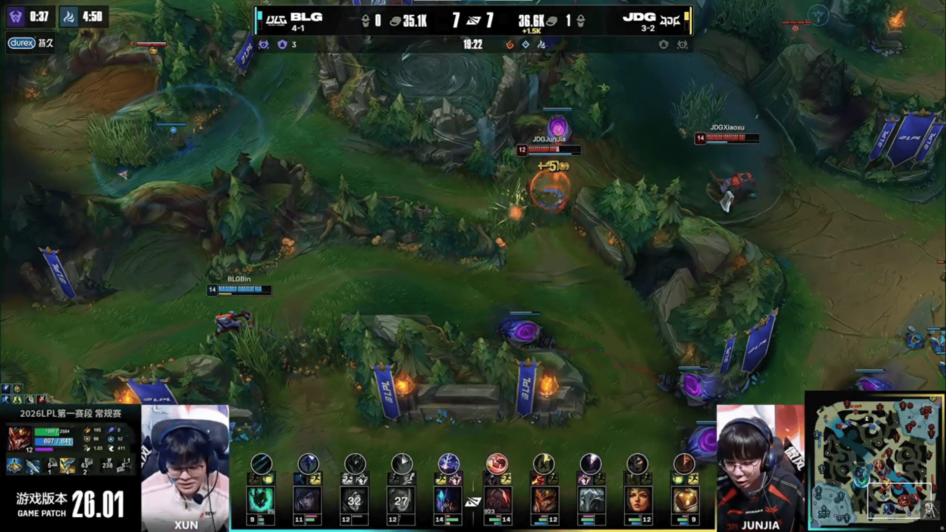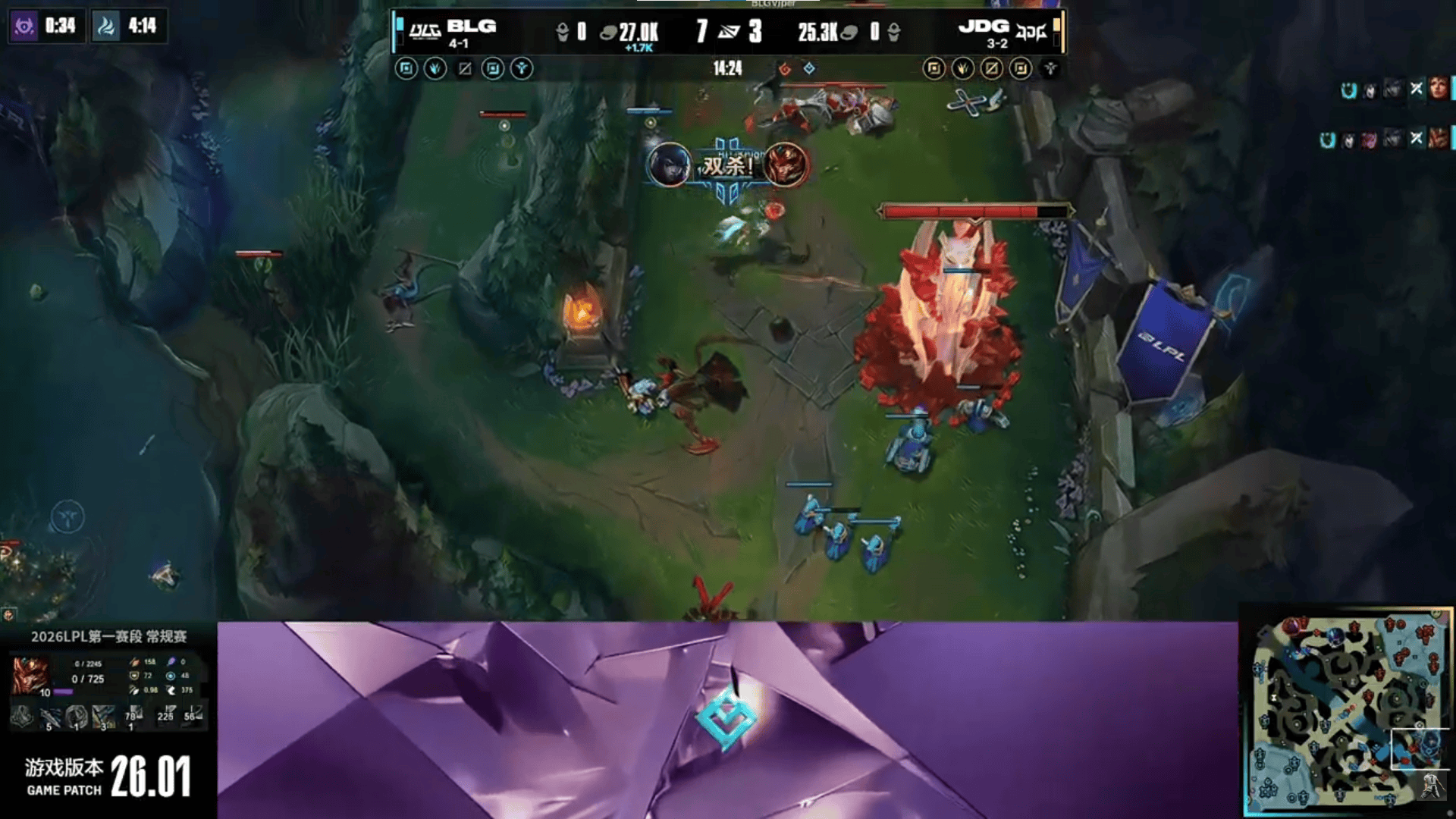 虎扑01月26日讯[GAME3]BLG蓝色方、JDG红色方