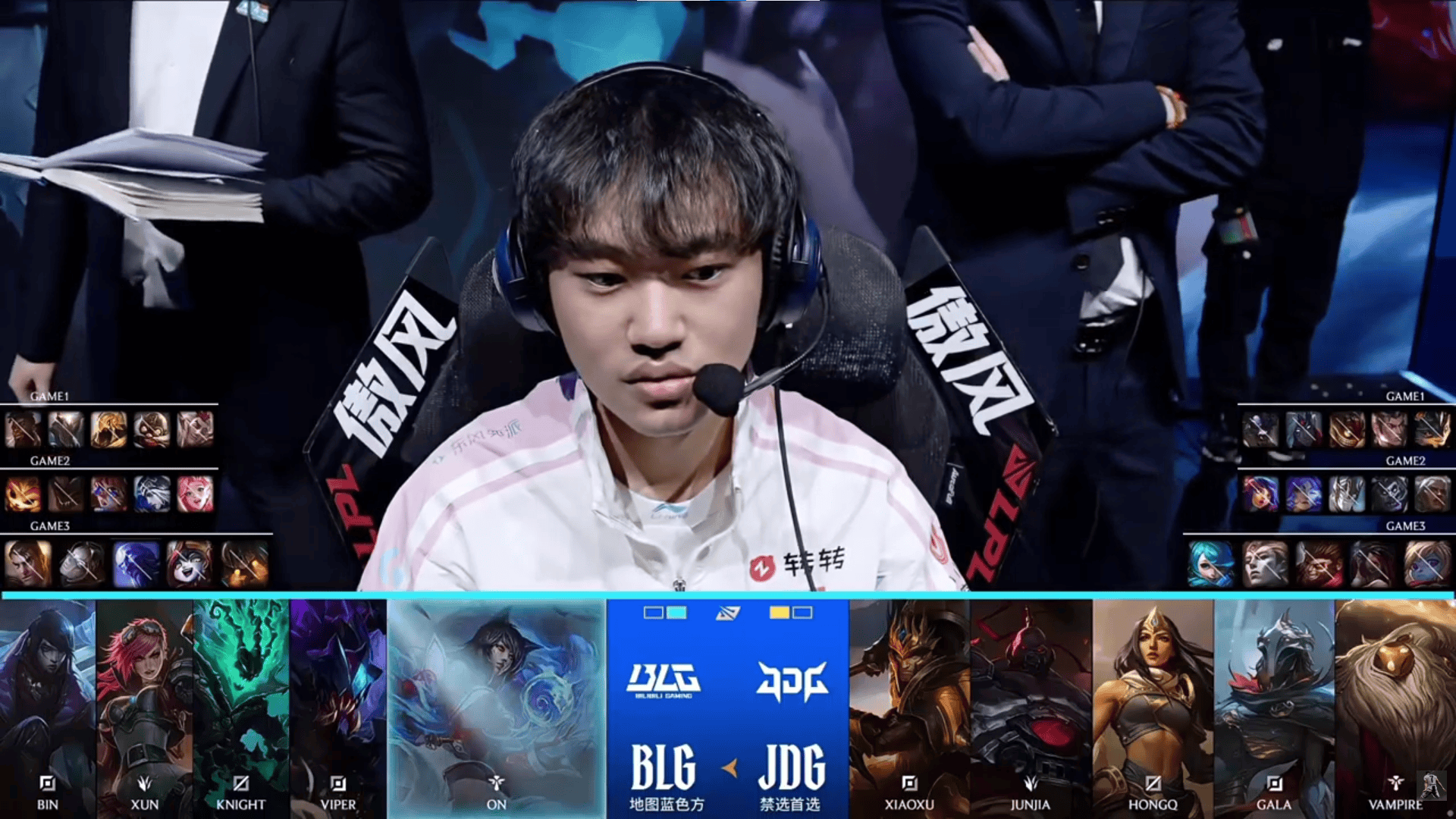 BLG选用:Bin雷克塞、Xun蔚、Knight阿狸、Viper厄斐琉斯、ON锤石
