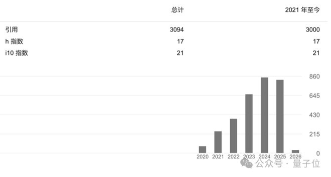 谷歌学术显示,齐炜祯的论文引用数已超过3000,h-index为17。