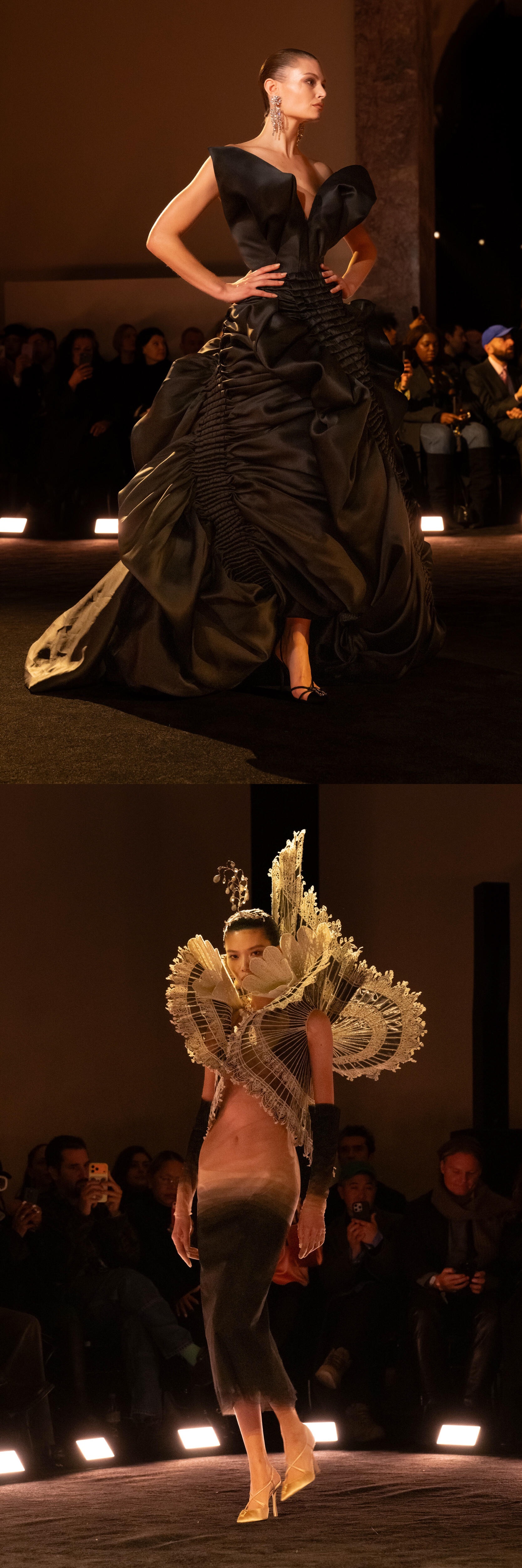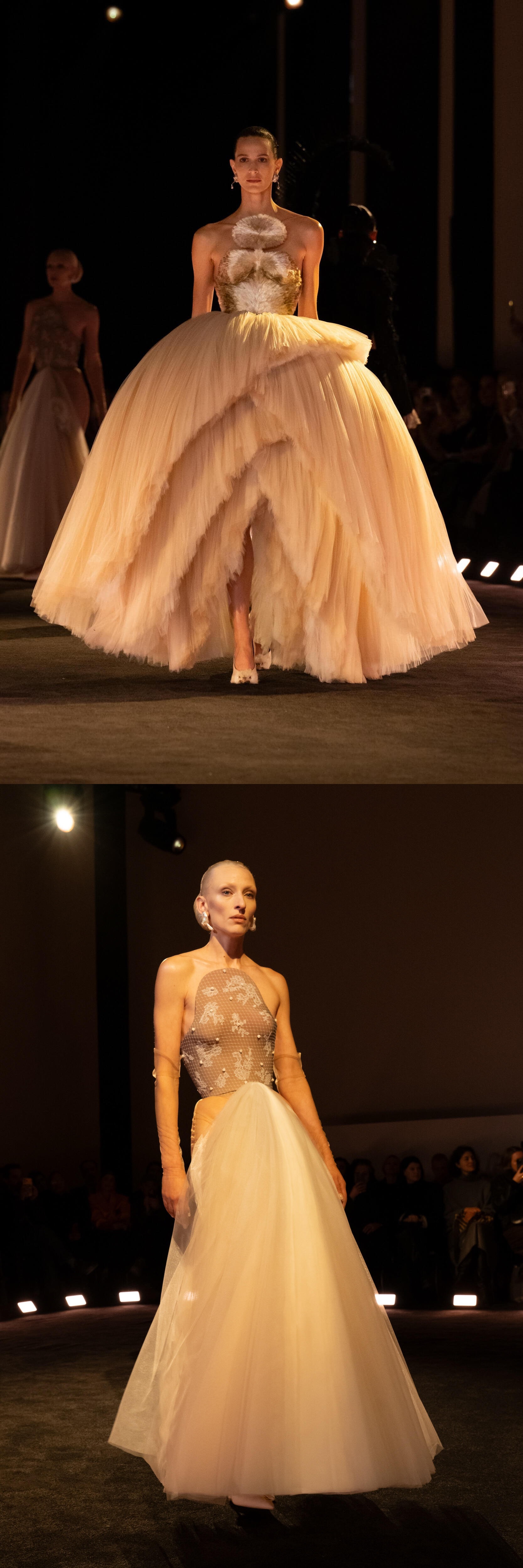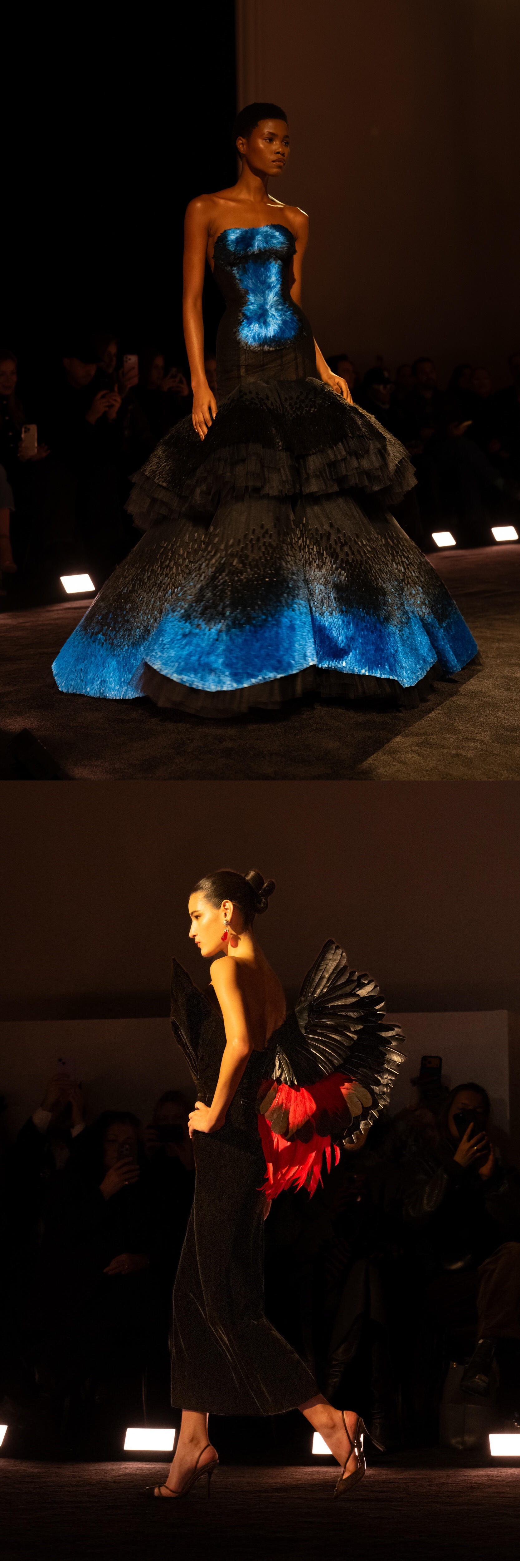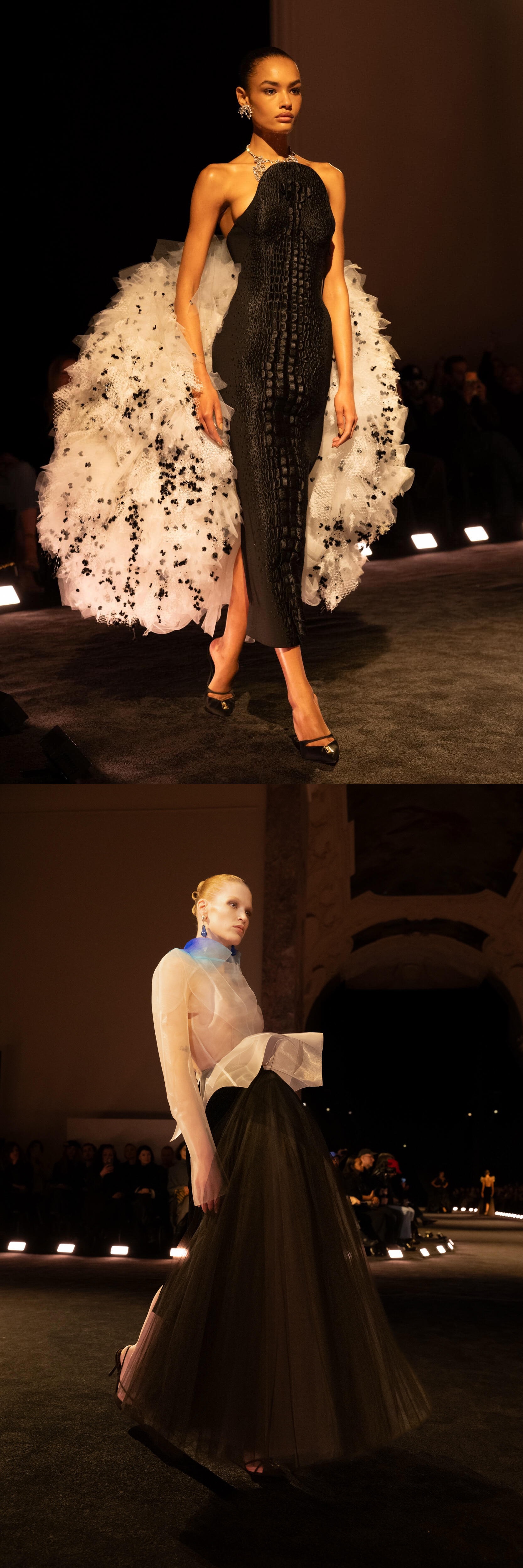2026 春夏 巴黎高定时装周 Schiaparelli 2026 S/S Haute Couture创意总监 Daniel Roseberry 在这一季以 「The Agony and The Ecstacy」(痛苦与狂喜)作为主题呈现 ,试图探寻如何将愤怒的情绪与创作结合 ,他以动物为灵感原型 ,上扬如蝎子尾巴的凌厉棘刺 、鸟类挥舞拍打的翅膀 、河豚自我防卫时膨胀鼓起的尖凸肌理 … 以顶尖的高定工艺将这些生物们感知危险 、愤怒 、张扬的表达方式与高定时装相结合 ,更通过材质堆叠与精密染色造就流动渐层 —— 从深邃暗调至炽烈亮色的自然过渡 ,让动物皮毛的原生光泽在光影中流转 。实在是太美了 ……大秀直击