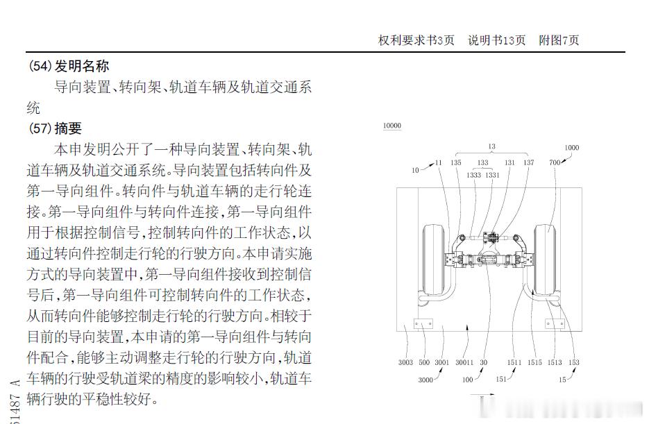 技术巡猎 比亚迪 “导向装置、转向架、轨道车辆及轨道交通系统“---很明显了,又是一个云轨专利,不过这次面向的是舒适性。传统导向式轨交(尤其是跨座式单轨那类)的逻辑,走行轮在梁的顶端滚动,导向轮则贴着梁两侧的导向面运行。列车转弯的时候,并不是说它和汽车一样,前轮会跟着方向盘转,而是和小时候我们玩的那种四驱车差不多,滑轮和跑道的力之间的作用,让车“实现转向”。问题也就出在这儿,导向梁的两侧,导向面的间距、平面度、施工误差一旦不够丝滑,导向轮就会被迫吃到横向激励,你可以这么理解,车轮一直在蹭路牙子。车是能走的,但它一直抖,乘客的感受好得了嘛?这是比亚迪这份专利的核心,导向装置里塞了一个“第一导向组件”,它不是单纯一个轮子,而是作动器+拉杆+联动件的机械链路,直接可以改变转向件的角度,让走行轮的方向变成可控---你把它想成汽车的转向机构就行:电机推拉拉杆---带动联动件---把轮子摆到你希望的角度。方向主导权从“轨道几何”挪了一部分到了“车端执行器”。直线路段的时候,作动器不驱动,拉杆相对轨道梁保持不动,转向件不转动,车就老老实实直着走。弯道/道岔这些需要转向的段落,控制信号让作动器工作,拉杆运动带着联动件转,转向件开始跟着摆动,走行轮就开始主动转向。这里面其实没急着讲什么高深的算法,就是把“需要一个平滑的控制信号,否则转向不太柔和”这种工程前提写出来而已,但这其实也是后续系统落地的难点:控制策略、执行器响应、机构间隙与回差,这些都要一并考虑。“被动导向“结构依然是在的,作为保留,它成为了第二导向组件。但它主要是在关键工况下参与导向,专利里写了一个失效逻辑:第一导向组件如果有控制偏差或失效,第二导向组件依然能通过与轨道梁配合,实现车的导向。第二导向组件的连接件,做成了类似“L”形的两段,中间留了一个避让空间可以让走行轮包进去,相当于是在很小的空间里,把“导向轮要靠外侧工作”和“走行轮要自由滚动”这对矛盾给摁住了,是有点巧妙的。还有一个几何关系是,导向轮轮距大于走行轮轮距。过弯时,车辆会有横向偏移趋势,外侧导向轮更容易先贴上外侧导向梁,尽早建立稳定的导向接触,同时走行轮侧面还能留出间隙,减少无谓摩擦和磨耗。这种设计属于“把接触变成你想要的接触”,不至于让磨耗变成随机事件。轨道梁侧也有一些工程化改造:走行梁在中间,两侧导向梁提供竖向导向面;导向梁的连接部还做了腰形孔,允许装配时调节两侧导向梁间距。另外还提了防侧翻件与导向梁止挡部的配合,等等等,这些机械细节,咱就不多叙述了。只从用户侧俩看,收益其实是很直观的,乘坐的体验更稳当、噪声更小。运营方实际上也有利益点:由于对导向梁几何精度的依赖降低了,装配调节空间更大,维护策略也有很大的优化空间。谁说迪子只能造汽车了?