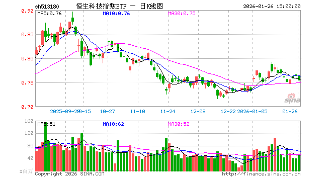 1月26日,恒生科技指数ETF(513180)跌1.18%,成交额36.62亿元。当日份额增加800.00万份,最新份额为697.69亿份,近20个交易日份额增加32.73亿份。最新资产净值计算值为527.87亿元。