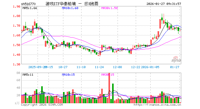 1月27日,游戏ETF华泰柏瑞(516770)开盘跌0.12%,报1.641元。游戏ETF华泰柏瑞(516770)重仓股方面,巨人网络开盘涨0.58%,恺英网络涨0.00%,三七互娱跌0.41%,光线传媒涨0.00%,神州泰岳涨0.00%,完美世界跌0.06%,吉比特涨0.68%,掌趣科技涨0.17%,游族网络跌0.48%,浙数文化跌1.07%。
