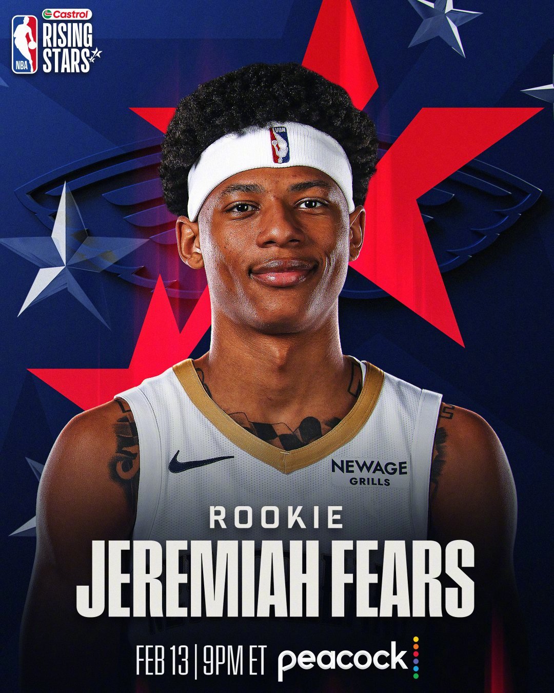 NBA全明星新秀赛一年级 & G联赛球员名单:· 塞德里克·考沃德(灰熊)· 叶格尔·杰明(篮网)· VJ·埃奇库姆(76人)· 杰里迈亚·费尔斯(鹈鹕)· 库珀·弗拉格(独行侠)· 迪伦·哈珀(马刺)· 特雷·约翰逊(奇才)· 康·克尼普尔(黄蜂)· 科林·默里-博伊尔斯(猛龙)· 德里克·奎因(鹈鹕)· (撕裂之城混音)· 肖恩·伊斯特二世(盐湖城星光)· 阿莱贾·马丁(猛龙905)· 小罗恩·哈珀(缅因凯尔特人)· 特里斯滕·牛顿(里奥格兰德山谷毒蛇)· 大卫·琼斯-加西亚(奥斯汀马刺)· 亚尼克·科南-尼德豪泽(圣迭戈快船)杨瀚森入选NBA全明星新秀赛
