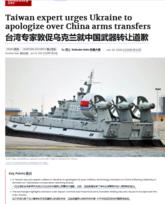 笑不活了!台蛙跳脚逼乌道歉,怕不是忘了自己算哪根葱?台湾省专家敦促乌克兰就中国武器转让道歉!根据防务博客消息:一位台湾安全专家呼吁乌克兰为过去向中国转让军事技术道歉。此前,泽连斯基发表了有关台湾零部件进入俄罗斯的言论。★:而早在2009年中乌签约引进4艘“欧洲野牛”气垫登陆艇并获全套技术,乌方建造2艘并交付,转让全套技术(含发动机、图纸等);中方在乌专家协助下于黄埔造船厂组装2艘。 “欧洲野牛”满载排水量约555吨,航速60节,可载3辆主战坦克或8辆步战车,具备强大岸-岸快速投送与自卫火力。★:台🐸可能真的吃饱撑的,刷存在感吗?这会质疑我们与乌克兰早期正当贸易活动,这事好像还轮不到一个省出来置喙!每天认识一件兵器全球武器装备盘点烽火问鼎计划