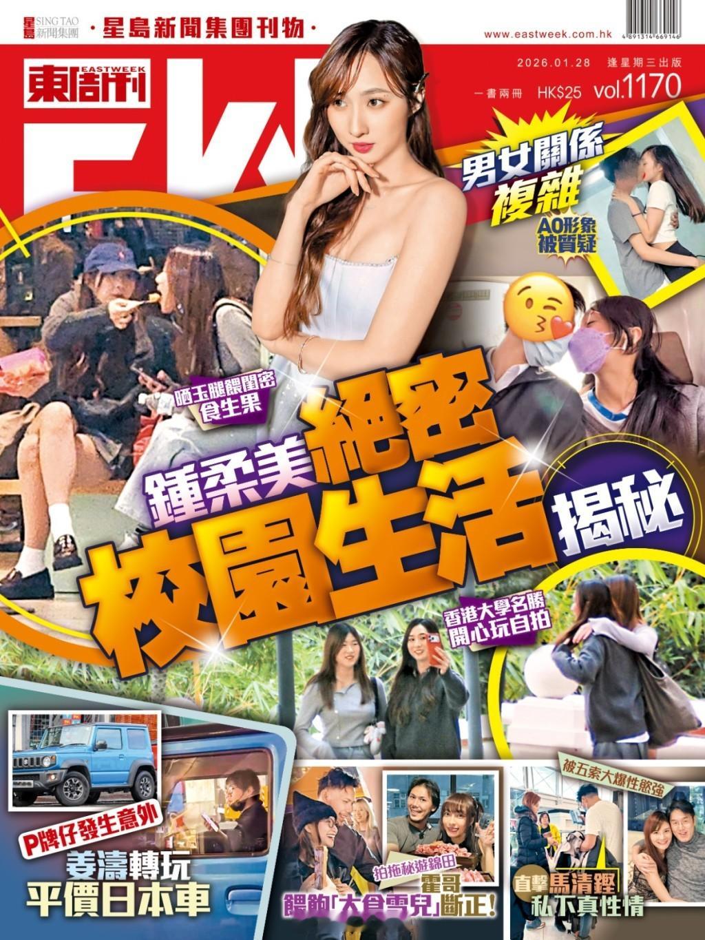鍾柔美男女關係複雜 《東周刊》獨家直擊騷玉腿餵生果 絕密校園生活揭秘現年19歲、童星出道的「聲夢小花」鍾柔美(Yumi),一直聲稱感情狀態是「A0」,成功建立純情形象。不過,她在去年底卻因錯發跟TVB藝人劉展霆的啜面短片而洩「蜜」;然而她死撐沒有拍拖,並堅稱「工作為主、學業為重」。鍾柔美校園生活大揭秘去年尾,本刊就捕獲在香港大學就讀新聞系的Yumi。現場所見,她悉心打扮,身穿短裙仔大晒玉腿,期間還開心得餵閨密食生果,又快樂地四周圍打卡,心情靚靚,盡情享受大學的校園生活!鍾柔美是中菲混血兒中菲混血兒、今年19歲的鍾柔美(Yumi),小時候已經跟隨薛家燕四出表演,亦曾參演劇集,變身童星。2021年,她參加TVB的歌唱選秀節目《聲夢傳奇》第一季,並憑勁歌熱舞奪得季軍,嶄露頭角。翌年,她正式出道成為歌手。之前,炎明熹(Gigi)由於不續約,被掟入雪櫃,故TVB便將準備投放在Gigi身上的資源,給予聽教聽話的Yumi,既安排她唱歌、拍劇,還鋪路返回內地發展,開行turbo力捧。鍾柔美拒拍跟異性親密舉動入行以來,Yumi一直堅稱自己的感情狀況是零拍拖經驗的「A0」。前年,被問及感情事時,她還煞有介事的說︰「我唔係好鍾意主動追男仔,唔鍾意呢種感覺。」同時,她自爆不能接受與異性在幕前有親密的舉動:「如果要拍攬攬抱抱或者錫錫場面,我都唔得。」純情形象冧爆一眾宅男,更捧她為「A0女神」。鍾柔美錫錫短片引軒然大波不過,去年底,Yumi因錯手放了一段短片,而引起軒然大波。片中,她被緋聞男友劉展霆從後攬實兼啜面,而她亦一臉受落。隨即「A0」身份備受質疑,Yumi 馬上解畫,表示在聖誕派對玩「真心話大冒險」,她由於輸了被罰上載短片,加上自己鬼妹仔性格,兼且與劉展霆是好朋友,總言之一切僅是玩遊戲而已。