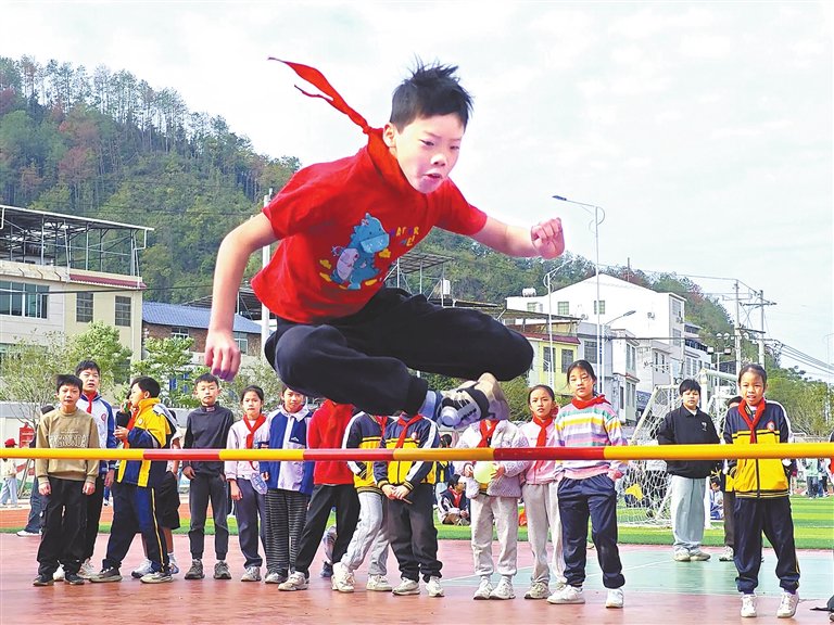 信丰县大桥镇中心小学坚持“健康第一”的理念,开齐开足体育课程,常态化开展运动会、趣味体育节等活动,让每个学生都能掌握至少一项体育技能。