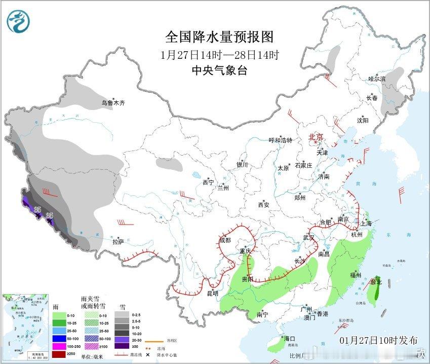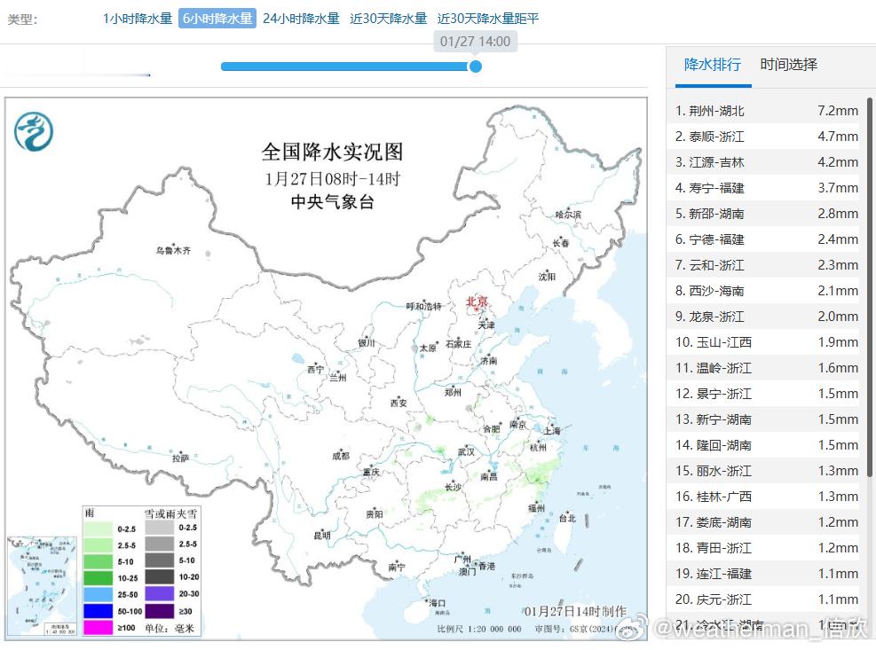 【降水】昨天到今晨,降雨向东向南推进,从广西北部到江浙沪多地出现小雨。今天降雨继