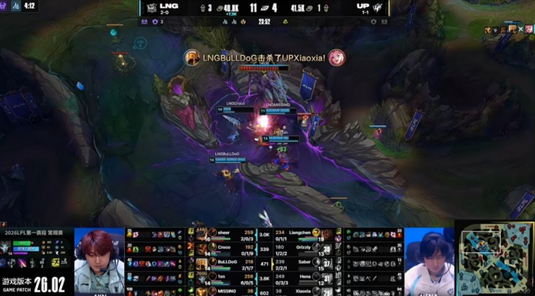 LNG:上单sheer、打野Croco、中单BuLLDoG、下路1xn、辅助MISSING