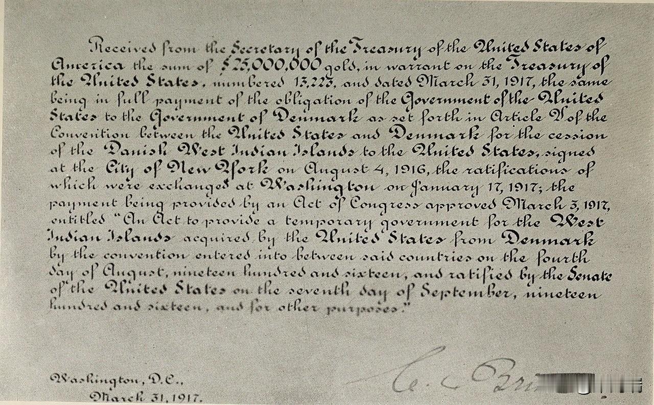 1917年,美国以2500万美元的金币从丹麦手中购入了丹麦西印度群岛 。这次交易包含三个主岛:圣托马斯岛(St. Thomas)、圣约翰岛(St. John)和圣克罗伊岛(St. Croix),以及周边的数十个小岛 。这些岛屿随后更名为美属维尔京群岛 (USVI) 。 这是美国领土扩张史上最后一次大规模的领土购买。 以下是该交易的详细过程: 1. 交易背景:半个世纪的博弈 早在19世纪60年代,美国就开始考虑购买这些岛屿。 南北战争的影响: 战争期间,由于缺乏加勒比海的港口,北方联邦意识到该地区极具战略价值 。 早期的失败尝试: 1867年,双方曾达成协议,但因美国参议院内斗及丹麦国内政治因素,条约未能获得通过 。 1902年的再次谈判: 双方再次达成协议,但这次被丹麦议会上议院以一票之差否决,主因是丹麦内部仍有强烈的民族主义情绪 。 2. 核心动因:一战与德国威胁 到了1910年代,第一次世界大战的爆发让交易变得紧迫。 战略担忧: 美国担心德国会占领丹麦(或向丹麦施压),从而接管这些岛屿作为潜艇基地(U-boat bases),直接威胁巴拿马运河及美国本土安全 。 美国的最后通牒: 1915年,美国国务卿罗伯特·兰辛明确告知丹麦,如果德国入侵丹麦,美国可能会出于防御目的接管这些岛屿 。 3. 谈判与定价 丹麦政府因连年赤字且难以管理这些偏远的岛屿,最终同意谈判。 价格确定: 美国最初出价较低,但丹麦坚持要价。最终双方于1916年达成协议,定价为2500万美元。这在当时是一笔巨款,约合现在的数亿至数十亿美元。 支付方式: 特别规定必须以金币(Gold Coin)形式支付 。 附加条款: 作为交换的一部分,美国承认丹麦对整个格陵兰岛的主权(此前美国在格陵兰也有主权要求) 。 4. 签署、批准与移交 条约签署: 1916年8月4日,双方在纽约签署了《丹麦西印度群岛条约》。 全民公投: 丹麦在1916年12月举行了全民公投,约64%的丹麦选民支持出售。 正式移交: 1917年1月17日,美国总统威尔逊签署了条约。 旗帜更迭: 1917年3月31日,在圣托马斯岛的克里斯蒂安堡(Fort Christian)举行了降旗仪式。丹麦国旗降下,美国国旗升起。美国海军部随后开始对这些岛屿实施管理 。 5. 历史意义 这次交易使美国在加勒比海获得了关键的防御屏障。直到1927年,这些岛屿的居民才正式获得了美国公民身份。如今,您可以通过 美属维尔京群岛官方旅游局网站 了解这些岛屿的历史遗迹。