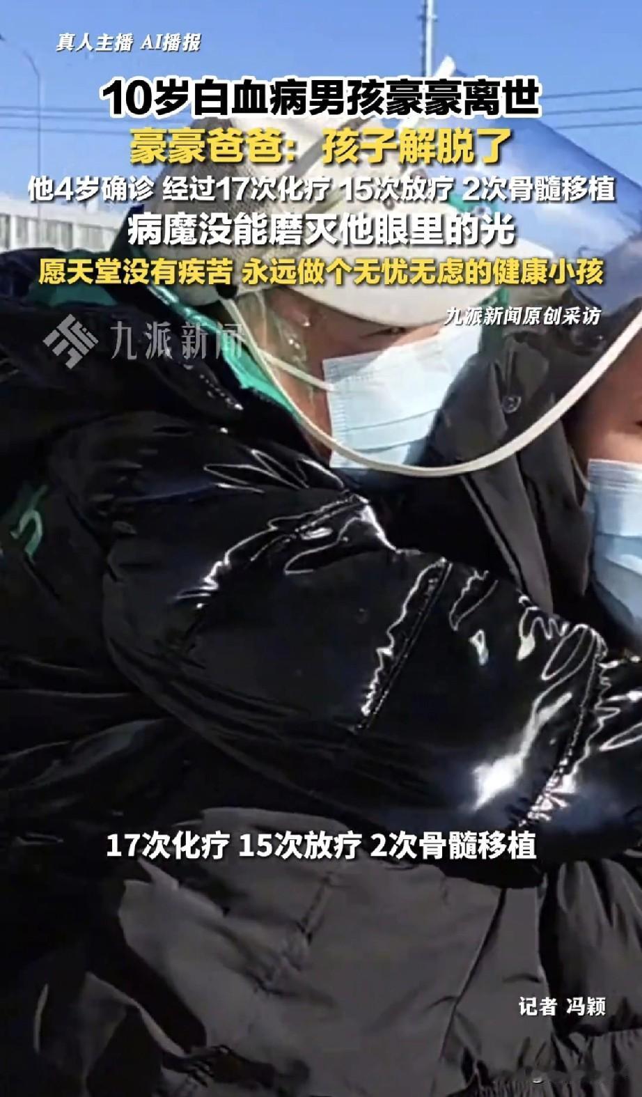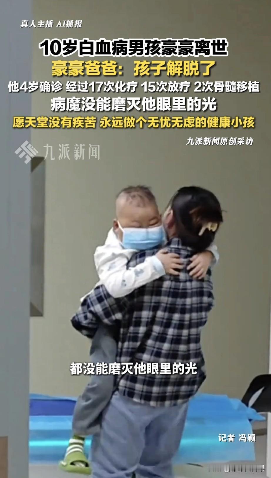 那个让全网心疼的“抗癌小王子”豪豪,还是离开了大家。 那个4岁确诊白血病、扛过17次化疗、15次放疗、2次骨髓移植的小男孩豪豪,今天凌晨永远地停下了脚步。 6年里,他被病痛反复折磨,眼睛几乎失明,全身插满管子,却总是笑着说“我是超人”。 那句稚嫩又坚定的“王子,请恢复健康”,曾治愈了无数网友,也支撑着他一次次闯过鬼门关。 爸爸说“孩子终于解脱了”,可我们知道,这是父母最痛的安慰。 那个眼里永远有光的小勇士,终于不用再打针吃药了。 小勇士,一路走好,愿天堂里没有针管和药片,只有你最爱的玩具和阳光。