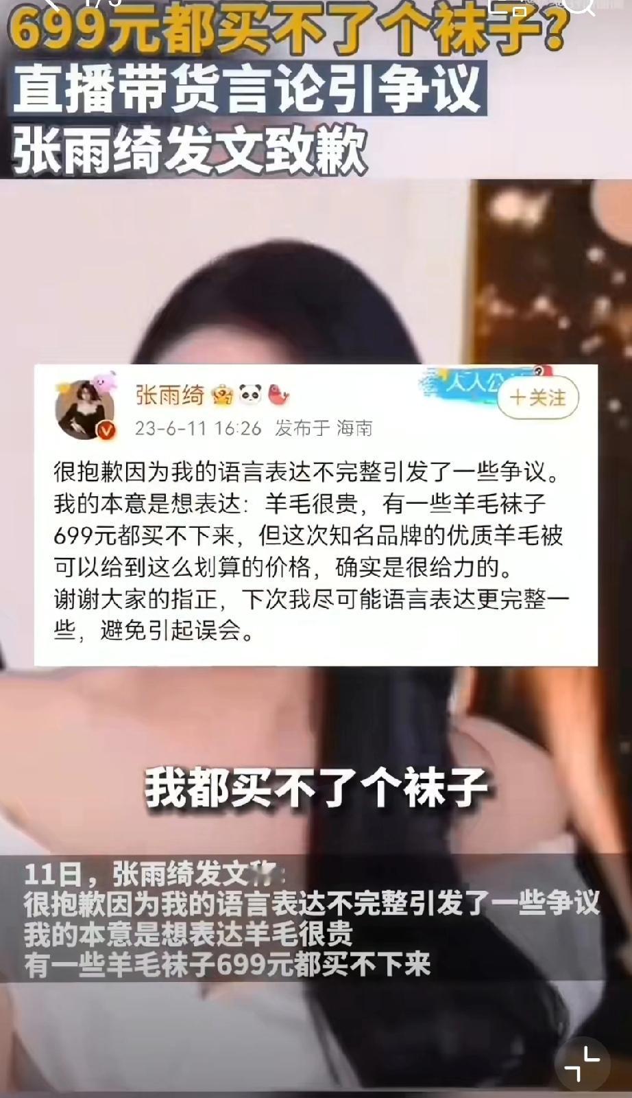 张雨绮曾说699买不了一双袜子。 “699买不了一双袜子”,“1克拉以下的钻石统称为碎钻”…… 张雨绮的过往暴论,终于还是多年以后,成为其炫富的罪证。 张雨绮的此番翻车,到底是因为炫富,还是因为疑似代孕? 我们无从得知。 但敢爱敢做,从来不是口无遮拦,更不是树敌八方。 招惹的人越多,往后的路越难走。 现在的翻车,也不过是刚刚开始。 [吃瓜群众][吃瓜群众][吃瓜群众] 张雨绮 张雨绮穿着 张雨绮穿搭
