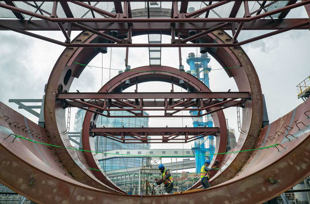 1月27日,位于安徽省马鞍山市的马钢有限特钢事业部,施工人员在新特钢炼钢及精炼(二期)项目建设现场作业。