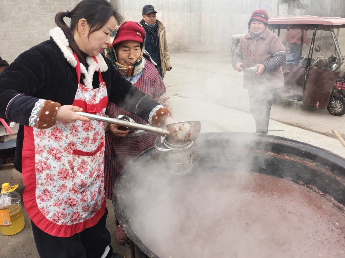 在北荣村的老年食堂,温情故事同样在上演。村干部牵头组织志愿者,提前采购新鲜食材,熬制出一锅锅软糯香甜的腊八粥,搭配着荤素搭配的馍菜,让老人们吃得舒心又营养。