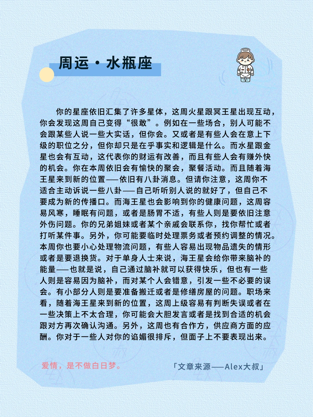 本周火星跟冥王星也出现了互动,这个星象代表着八卦消息出现,同时也代表着——会有一股新生的能量出现在自己的身边,例如可能社交圈子有新的成员出现,职场有新的员工加入,又或者是行业出现新的气象,一些新的政策等等。而如果你本身有投资理财的行为和习惯,那么本周金融市场的波动起伏较为明显,容易给人带来一种刺激和想要“赌一把”的心态,虽然风险越大代表着可能存在较高的回报率,但请你务必结合自己的实际能力和财务能力,去做合适的调控——请你保持冷静,不要让自己出现损失。