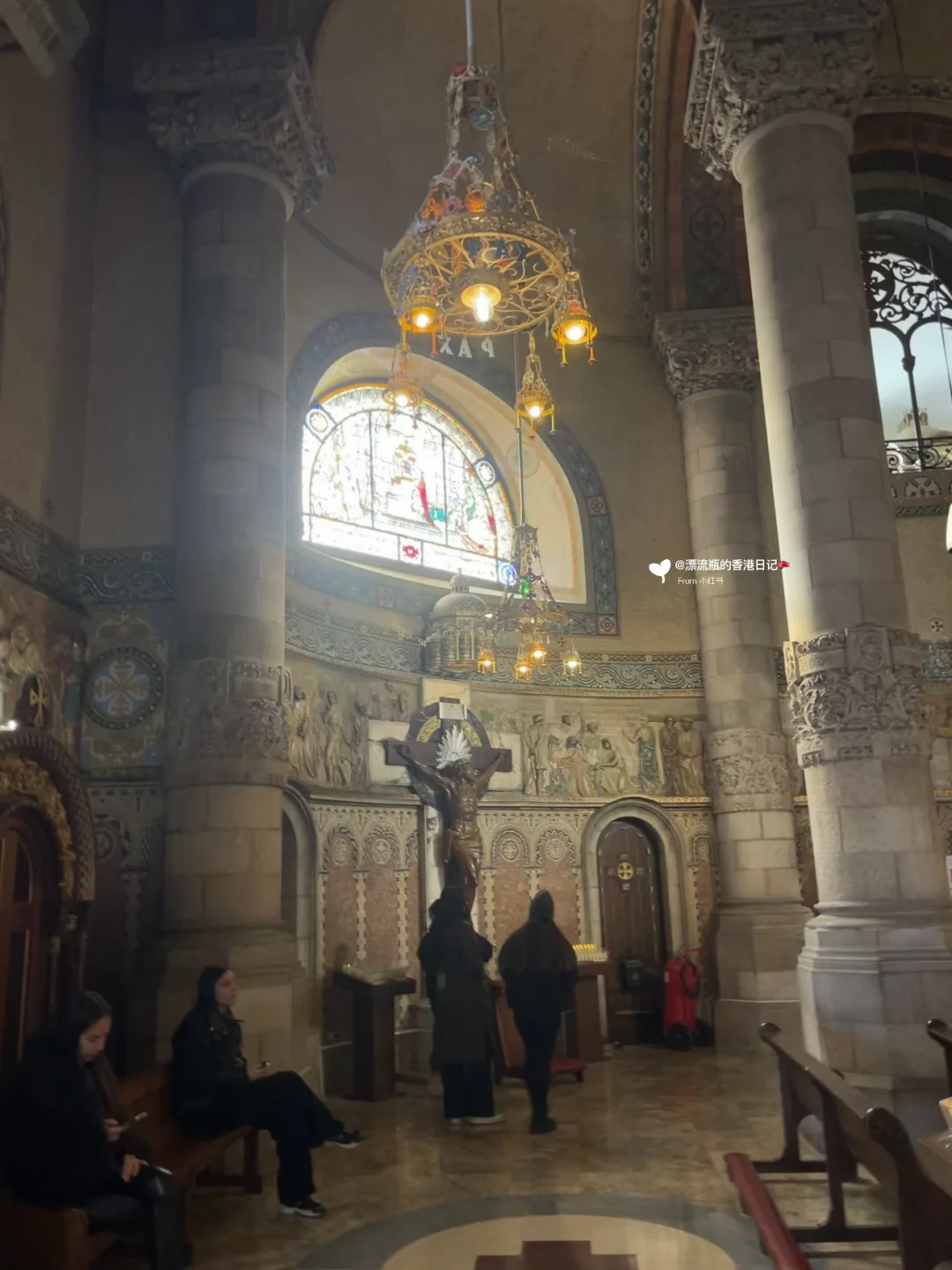 坐电梯上去,再走上旋转楼梯,就能找到“神明爱世人”机位。偶遇拍婚纱照🎎的一对couple,意境太美了