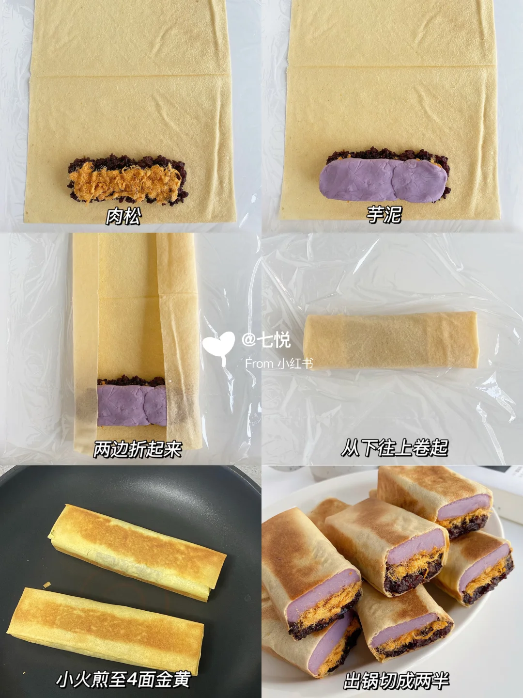 👉紫米芋泥肉松煎饼