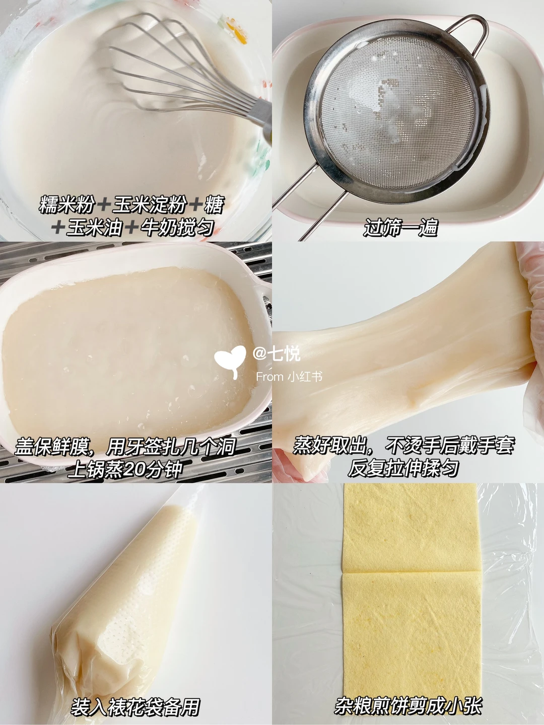 麻薯:糯米粉60g,玉米淀粉20g,糖10g,玉米油10g,牛奶90g