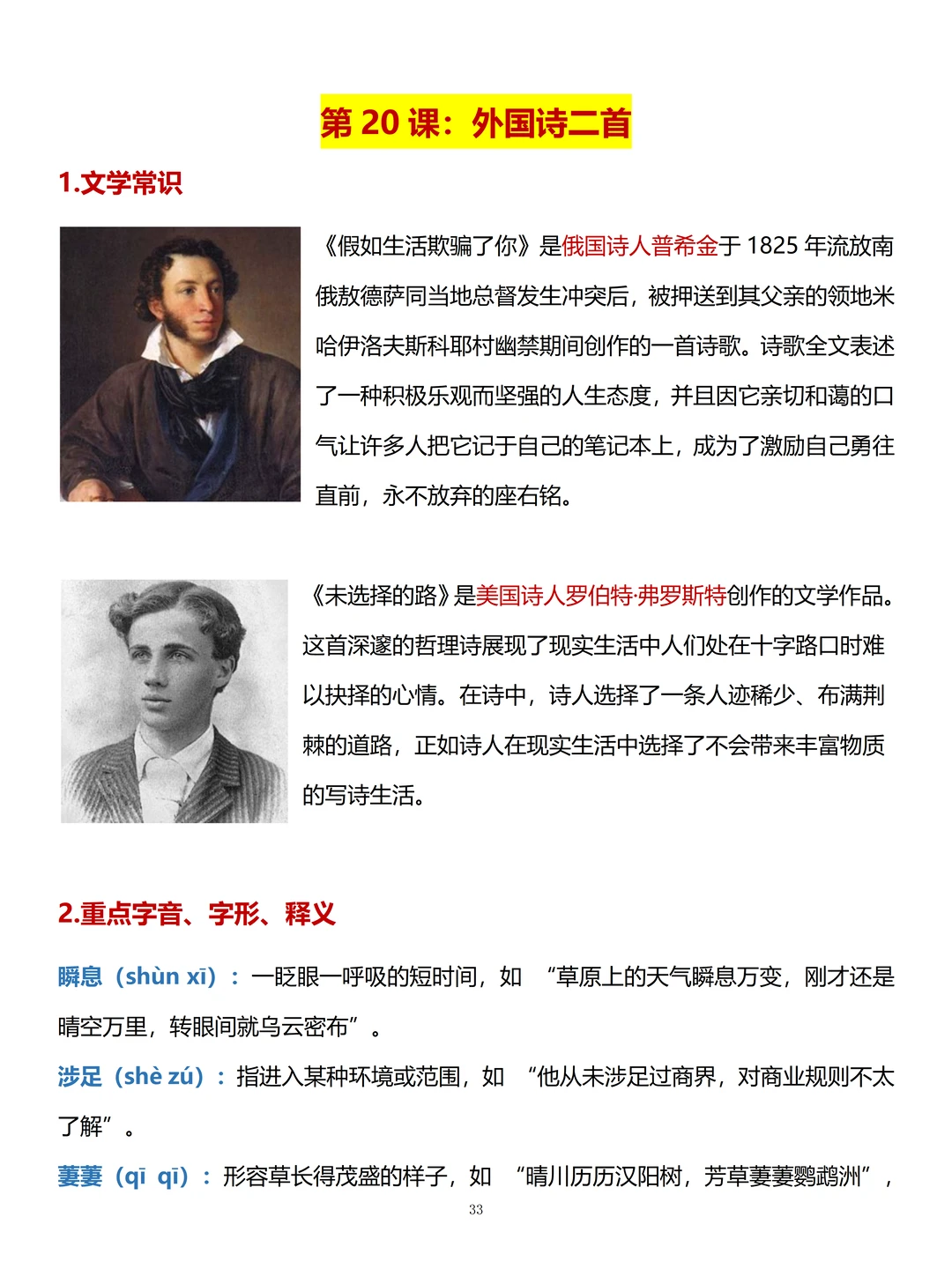 我帮大家把七年级下册语文的基础知识整理出来了[鼓掌R]