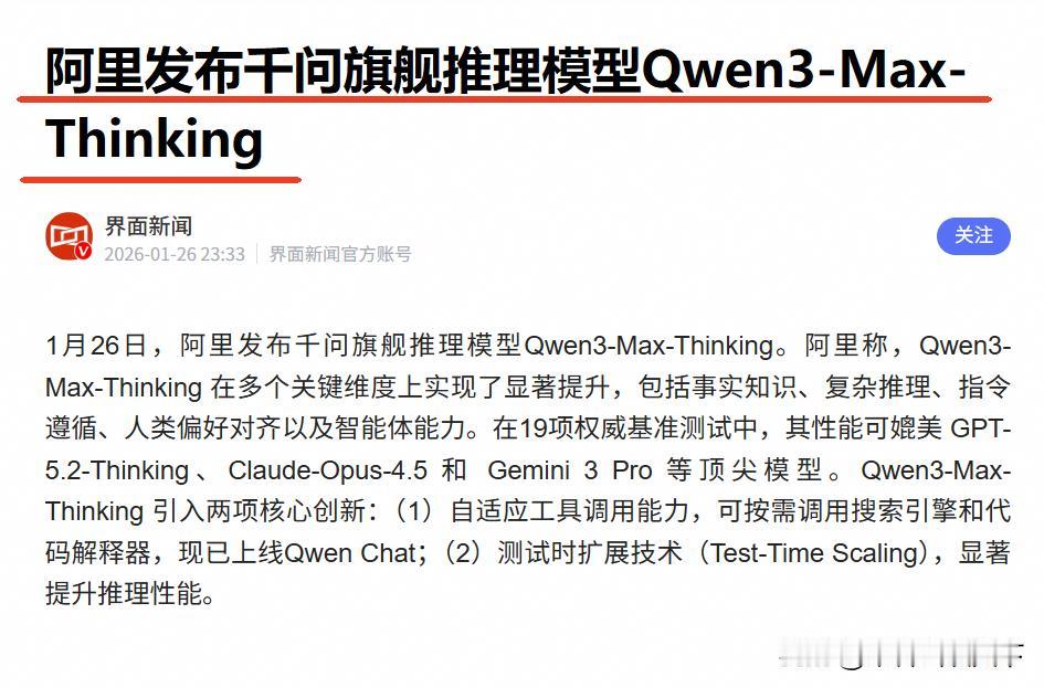 当国外巨头还在质疑中国AI的原创性时,全球市场已经给出了最诚实的答案。[灵光一闪] 今年开年,阿里发布了Qwen3-Max-Thinking模型,在多项主流评测中表现进入第一梯队,与GPT-5.2、Gemini 3 Pro等模型处于可对比水平。但对资本市场来说,真正重要的并不是榜单名次本身,而是这款模型背后所代表的能力结构—阿里并不是只在做一个模型,而是在同时推进芯片、模型和云服务的一整套体系。 如果只看榜单,任何模型的领先都可能被追上;但如果把模型训练、算力供给和云基础设施整合在一起,形成一个可以持续运转的系统,这种能力就很难被快速复制。阿里当前展示的,正是这种系统化能力。 最近一个很现实的信号是,阿里旗下芯片业务平头哥传出独立上市的消息,市场随即给出了积极反应。这说明投资者真正看重的,并不是某一次模型测试结果,而是阿里是否掌握了关键的底层能力。逻辑也很清楚:自研芯片可以降低算力成本,大模型负责吸引开发者和应用,阿里云则承载所有实际使用场景。 当企业为了使用 AI,将数据和业务逐步迁移到云上,模型调用所产生的Token消耗,就会转化为持续的云服务收入。这种收入不是一次性的,而是伴随业务长期存在的。 因此,关于“中国AI有没有原创性”的质疑正在被市场以更加直接的方式回应。真正决定技术价值的,是是否被大量使用、是否能融入真实业务。现实情况是,已经有不少海外公司采用相关技术,全球开发者也基于千问开源模型构建了大量应用。技术是否站得住,最终由使用规模来证明。 从更长周期看,这一轮 AI 竞争的核心正在发生变化。比拼的不再只是模型参数大小,而是谁能构建起从底层算力到上层应用的完整体系。掌握这种能力的公司,才更有可能在下一阶段持续受益。