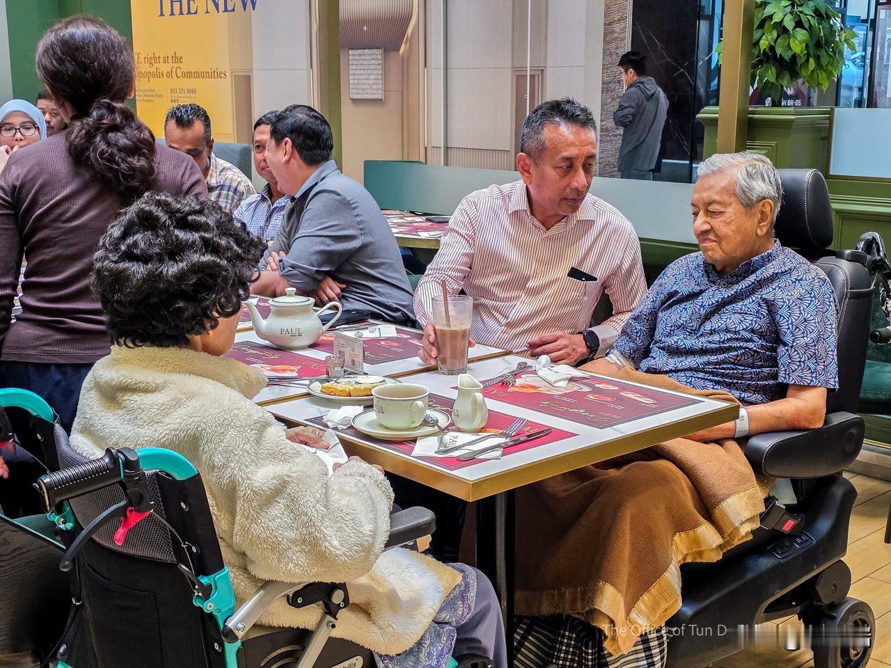 马来西亚前总理马哈蒂尔自1月6日入院治疗髋部骨折以来,首次获准短暂外出,并享用了一杯冰巧克力。 2026年1月27日. 地点: 吉隆坡柏威年白沙罗岭(Pavilion Damansara Heights)购物中心内的一家咖啡馆。 马哈蒂尔医生在妻子西蒂·哈斯玛(Tun Dr. Siti Hasmah Mohd Ali)及国家心脏中心(IJN)医护人员的陪同下,在咖啡馆停留了40分钟。 这是他自入院以来首次外出,他选择了一杯冰巧克力,他尚未获准回家,将继续留在国家心脏中心接受治疗和康复。 探视限制: 目前仅限直系亲属探视.