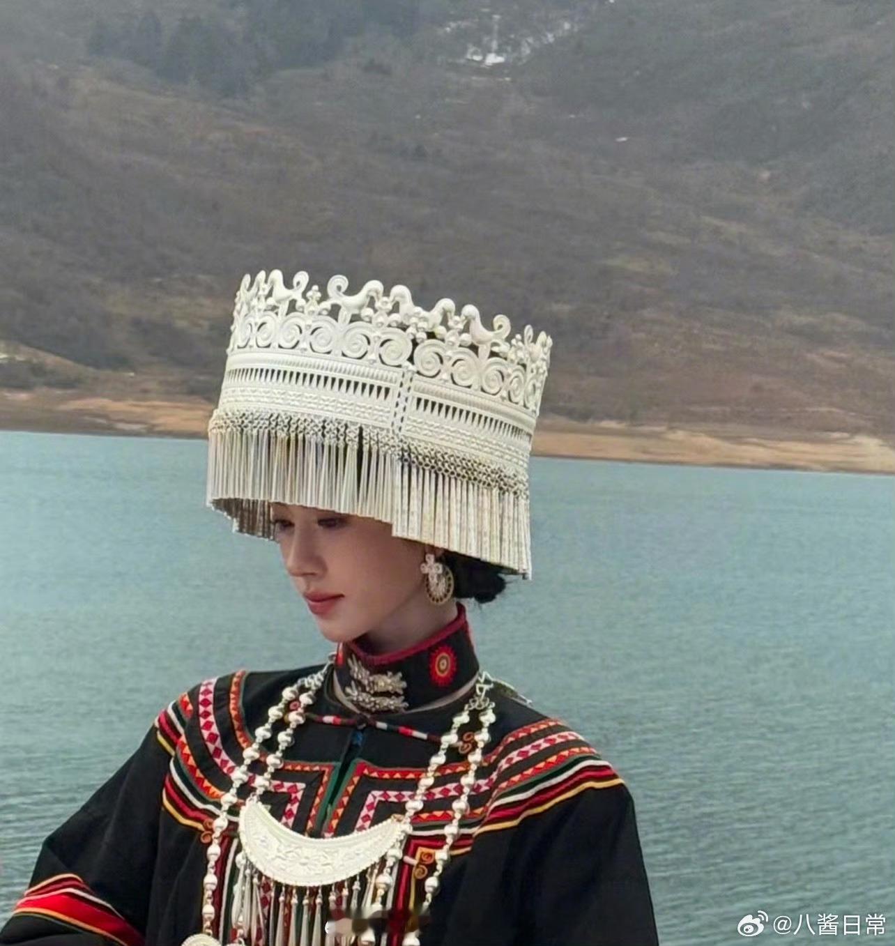 网友在冶勒湖偶遇鞠婧祎 ,苗族装扮真好看 冶勒湖偶遇鞠婧祎