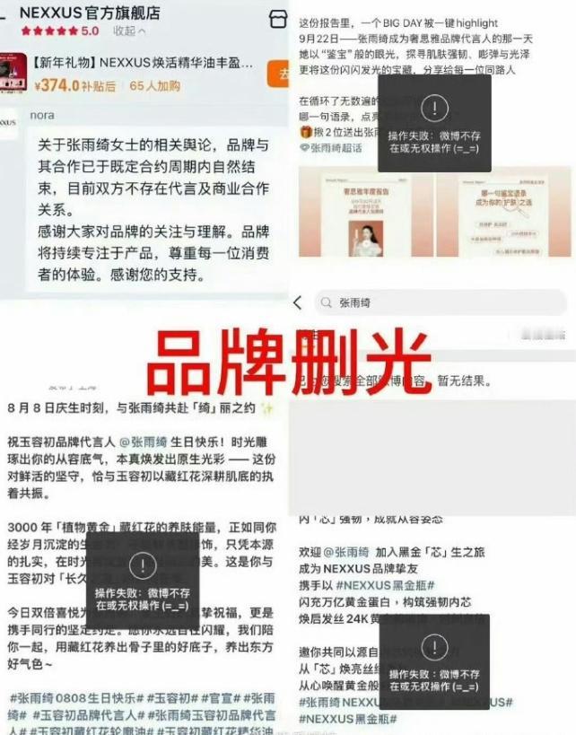 张雨绮多个商务被删光了! 张雨绮前夫的前妻曝张雨绮代孕,张雨绮并没有正面回应,品牌方按理来说应该处于观望态度,不过这次多个品牌一块把张雨绮的代言文案全部删除,或者权限看不了了,据说她的巴黎看秀的行程也被取消了,卫视春晚被退货,也有可能退出常驻综艺《开推3》。