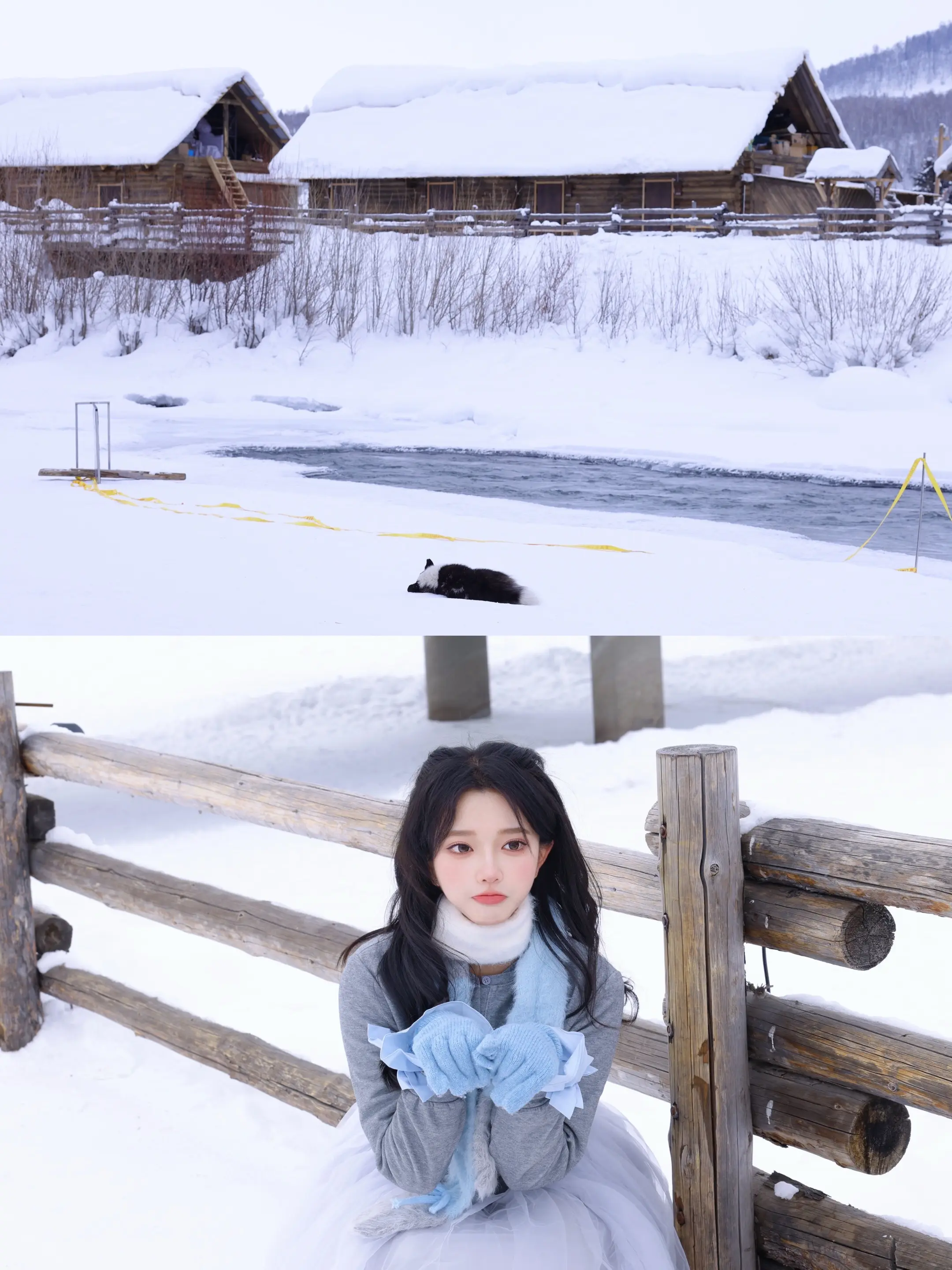 天色与雪色之间。