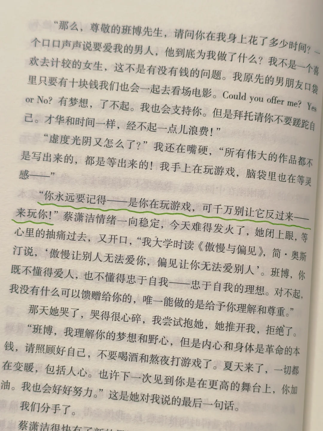 小说里的爱没有轰轰烈烈的告白或决裂,更多是“不说出口”的感受,比如: