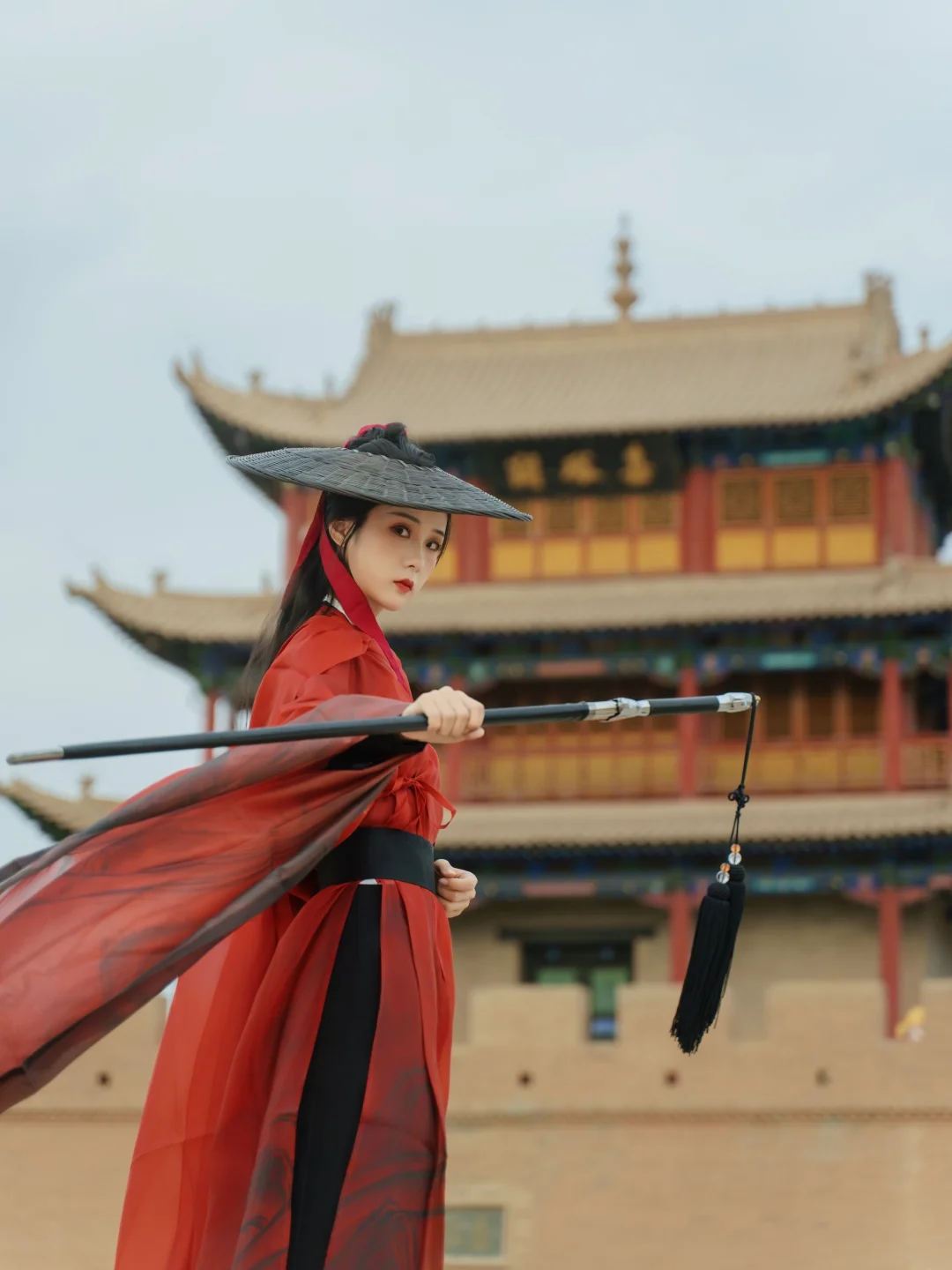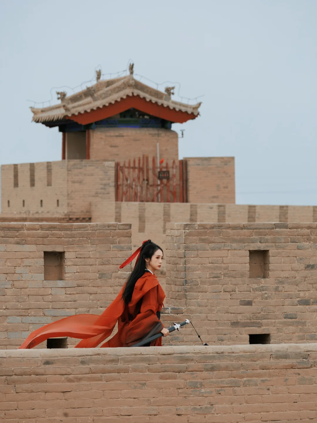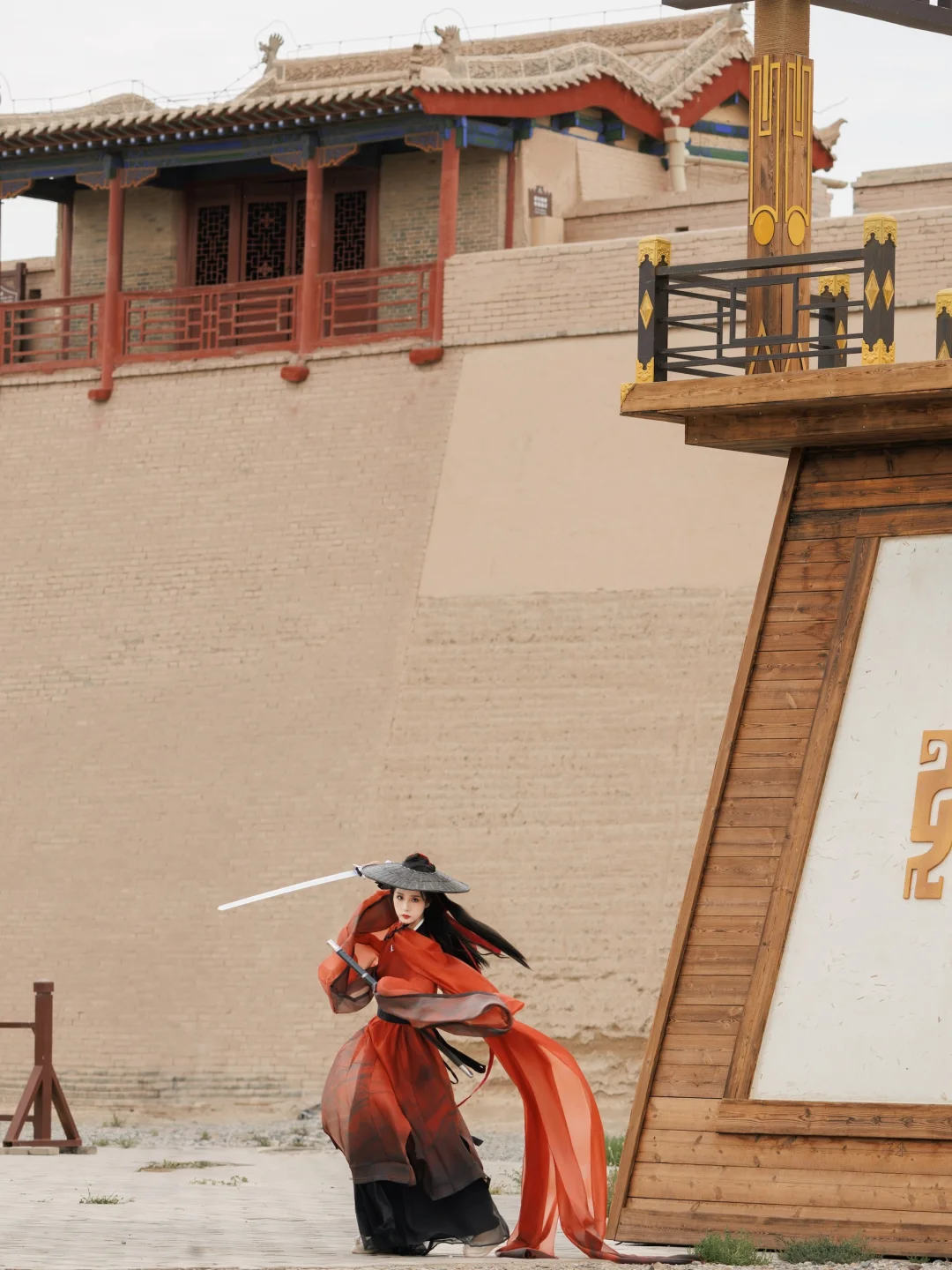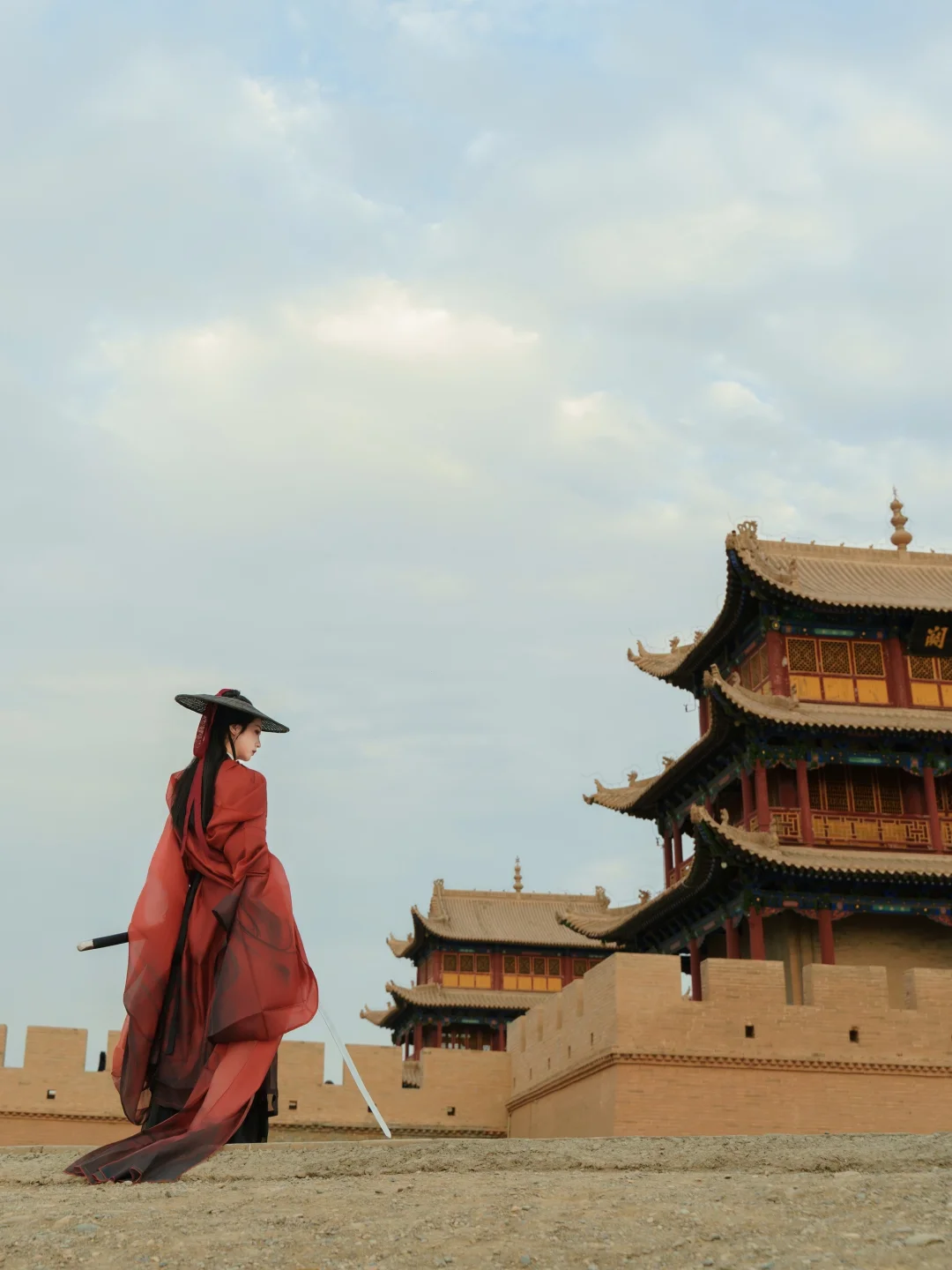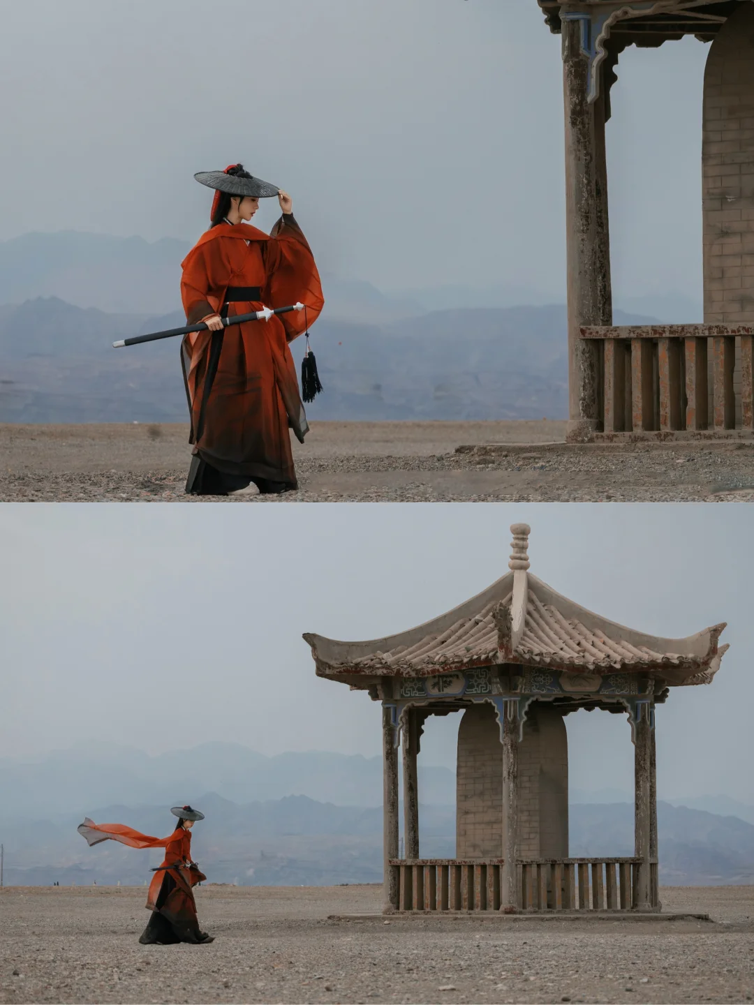 关城外的碑亭只身坐卧在苍茫天地间,祁连雪峰为剑,瀚海黄沙作阵。——太适合拍武侠了!