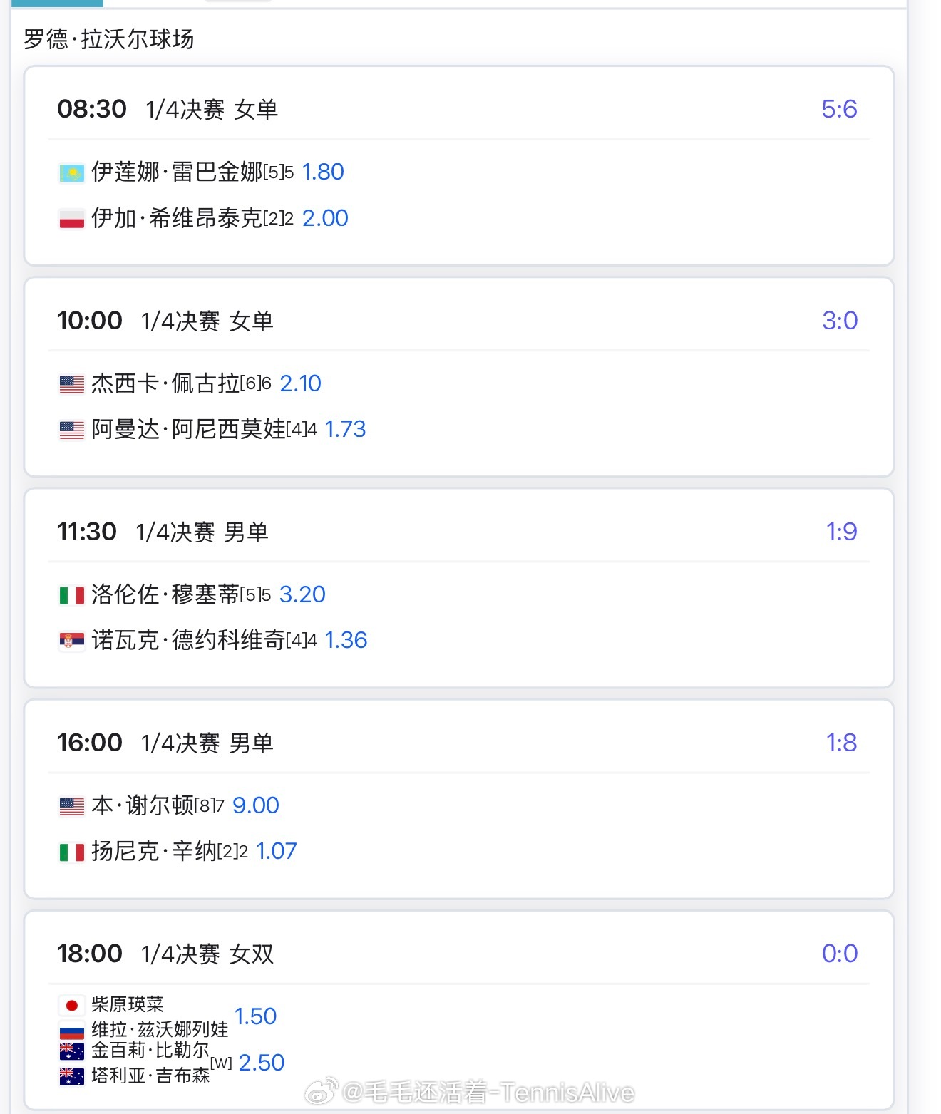 【1月28日澳网第10日比赛赛程】8:00张帅女双1/48:30斯瓦泰克vs莱巴金娜10:30阿尼西莫娃vs佩古拉12:00谢淑薇女双1/412:30德约科维奇vs穆塞蒂16:00辛纳vs谢尔顿这很澳网澳网2026