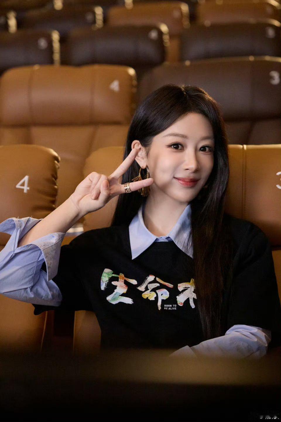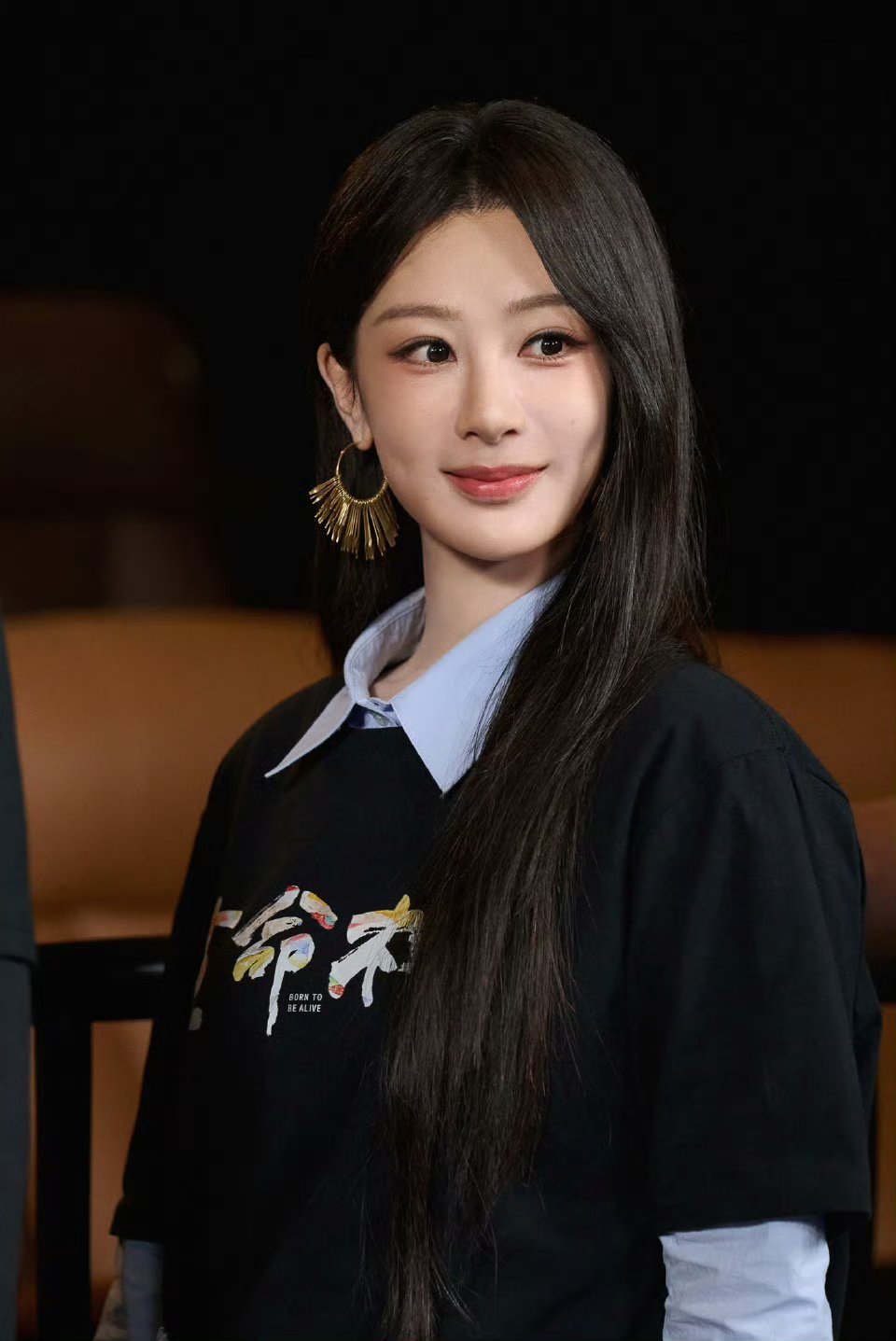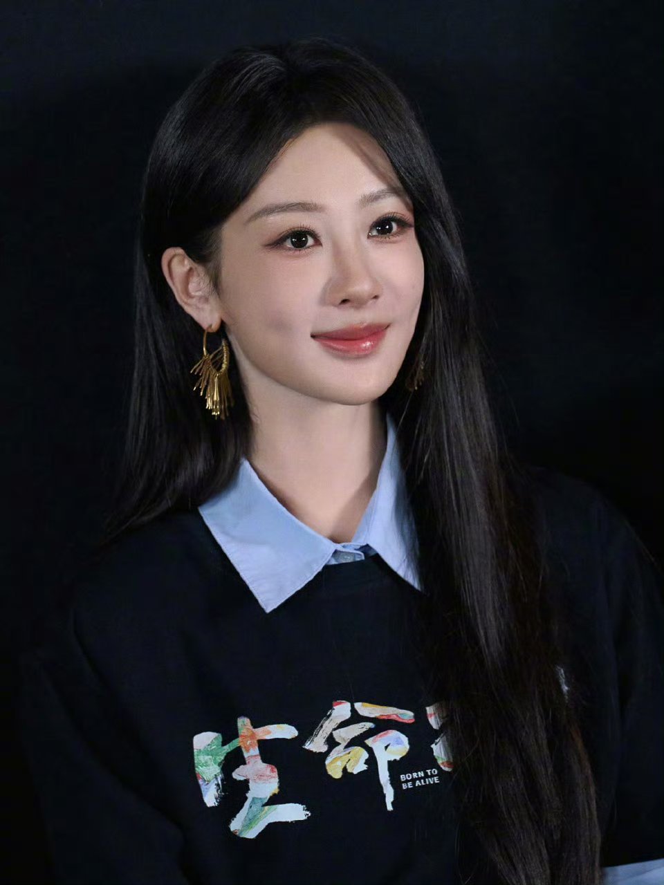 杨紫文化衫配黑长直杨紫杨紫杨紫明星