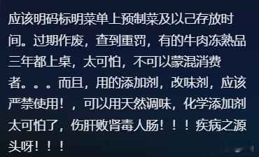 饭店到底该不该使用预制菜?上海网友一针见血:我去饭店干嘛? 这几天看到新闻预制菜将出台国有标准,国务院食安办等部门将对预制菜国家标准等公开征求意见。 不可否认的是现在的预制菜使用已经很广泛,未来推广的趋势也是不可避免的。但是很多老百姓心里的焦虑并没有减少。那么,饭店到底该不该使用预制菜呢? 有的人觉得这是一种现实妥协,毕竟生活太快、成本太高,预制菜在某些场合确实解决了供应难题。 有人则坚持去饭店就是为了享受现场厨艺,预制菜会让人觉得被“欺骗”,甚至影响体验和健康。他们喊着要“知情权”,希望走进饭店,吃的东西能如实告知,价格透明,决策权在自己手里。 还有声音呼吁,监管要更严格,菜单上明确标注,严禁过期、添加剂滥用,这样消费者才能安心。 其实,这不只是个“能不能”的问题,更触及了现代餐饮的基本信任。预制菜在供应链和效率上有优势,但如何让消费者放心接受,则需要吃饭的人和做饭的人都能相互尊重,坦诚沟通。大家真的需要的是“知情权”和尊重选择。 那么,你有没有在点菜时怀疑过??或者遇过饭店用预制菜却不告诉你的经历?