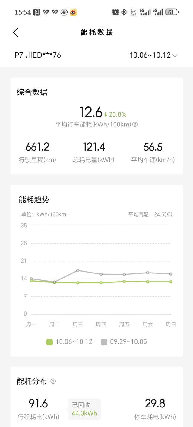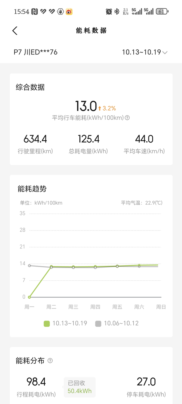 能耗大概在13kwh/100km左右浮动 主要用车道路未一级公路和城区。开启智驾