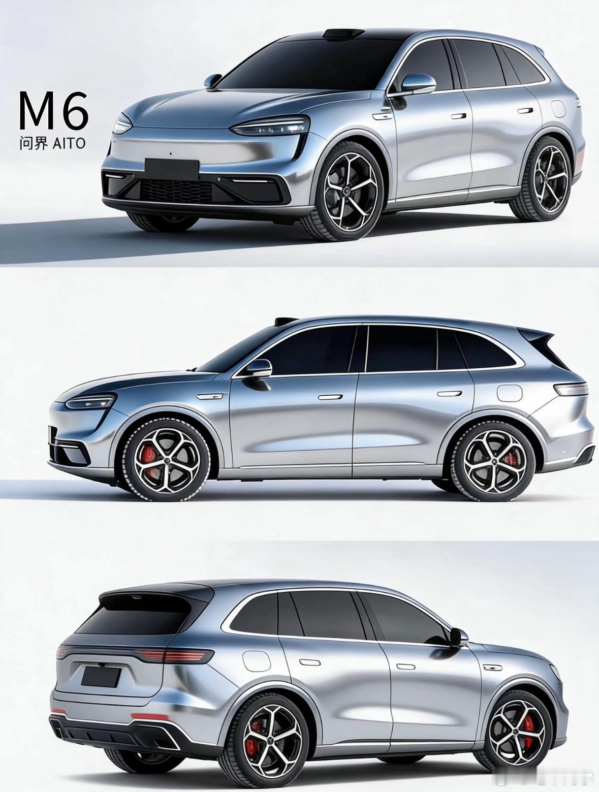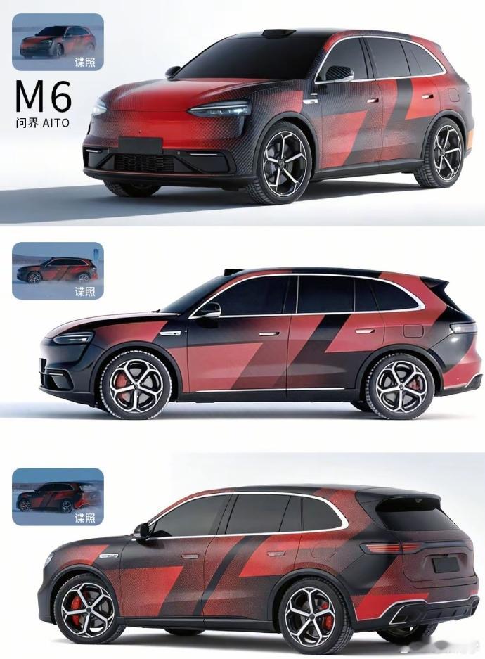 电车同学点评问界M6这几天问界M6的官方冬测视频出来后,很多朋友做了对照猜想图,这几张是比较接近实车的,我点评一下:1:颜色黑白银肯定是有的,但银色不会是这个亮银,其他的颜色估计会比较青春靓丽,饱和度高的那种,接近小米YU7。2:和M789最大的区别是前后大灯,都不是贯穿灯了,前后都是分体灯,但大灯的设计还是一套。3:前后下保险杠也是区别789最大的地方,对比谍照,图里这个下保都是正确的,但我猜测和之前一样,增程和纯电的下保有差异。4:门把手是半隐藏半机械式的,好评。顶部激光雷达估计是全系标配了,是否是最新500线的还不知道。5:尾部确实有点保时捷卡宴的影子,但整体还好,传统厚重的SUV大差不差都是这种感觉。价格我估计24万起,下面的空间留给下半年大改款的问界M5。