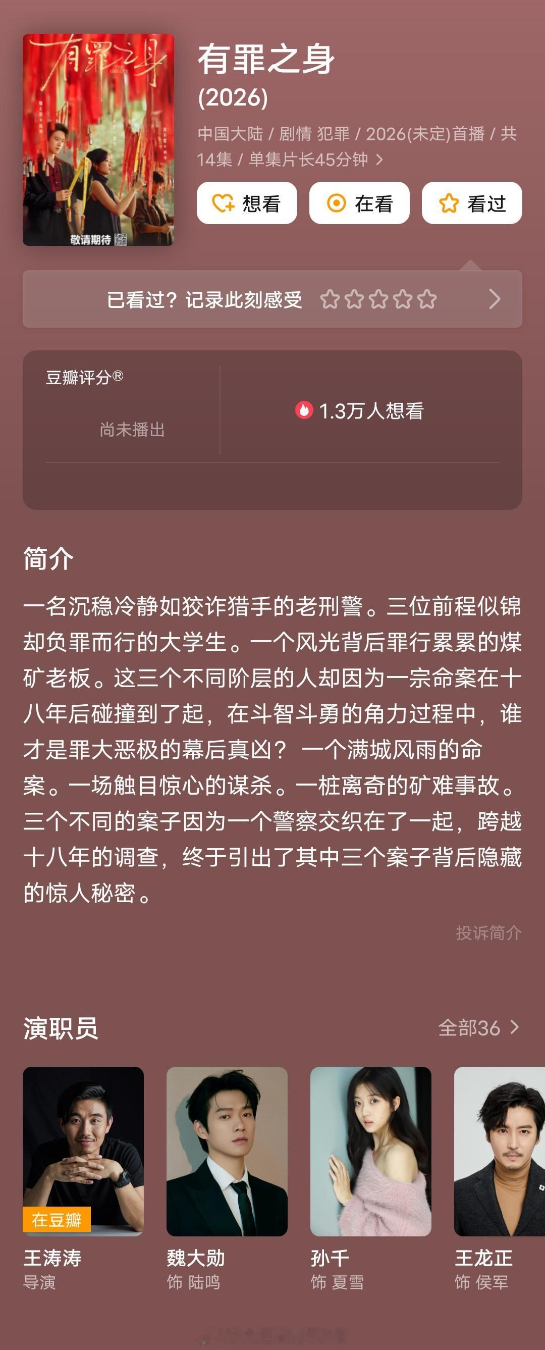 魏大勋孙千《有罪之身》今日开播,魏大勋一番变二番。开机时只是友情主演的王真儿变成了一番主演,一个在预告片里都没有镜头的人。好诡异的操作。。。有罪之身今日开播 有罪之身