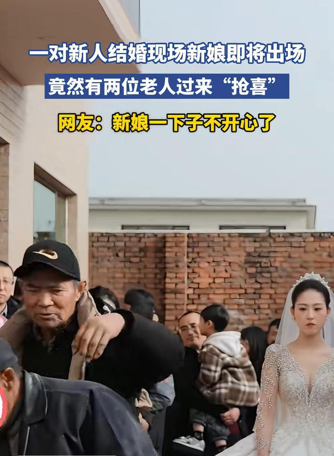 老人婚礼现场“抢喜”惹新娘不 开心 一对新人结婚现场新娘即将出场, 竟然有两位老