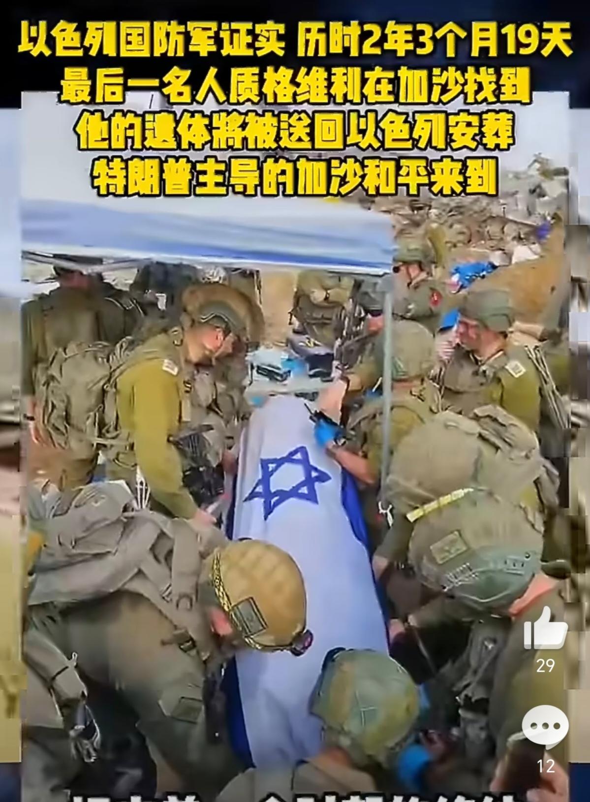 以色列最后一名人质遗体历时2年3个月19天被找到。格维利!你的战友带你回家。 格
