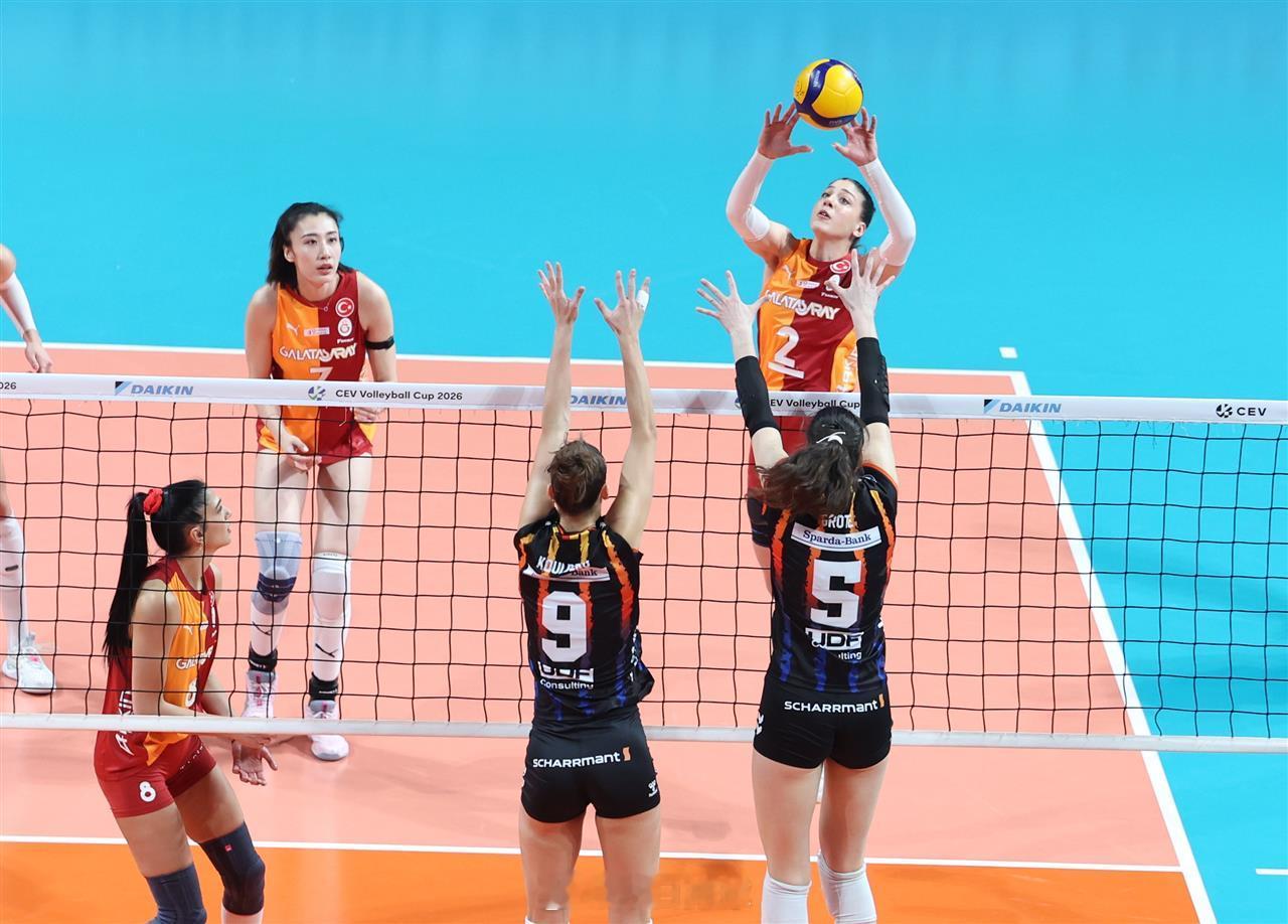 【王媛媛12分 女排欧联杯加拉3比1斯图加特】北京时间28日凌晨,2026女排欧联杯 附加赛首回合,土耳其加拉塔萨雷在主场以3-1(25-12, 21-25, 25-16, 25-10)力克德国斯图加特,在“2回合+金局”的系列赛中以1-0领先。格罗贝尔纳21分,卡鲁塔苏16分,王媛媛 12分(拦4),伊尔金7分,居维利6分;瓦雷拉·戈麦斯12分,P·马丁11分,格罗特8分。