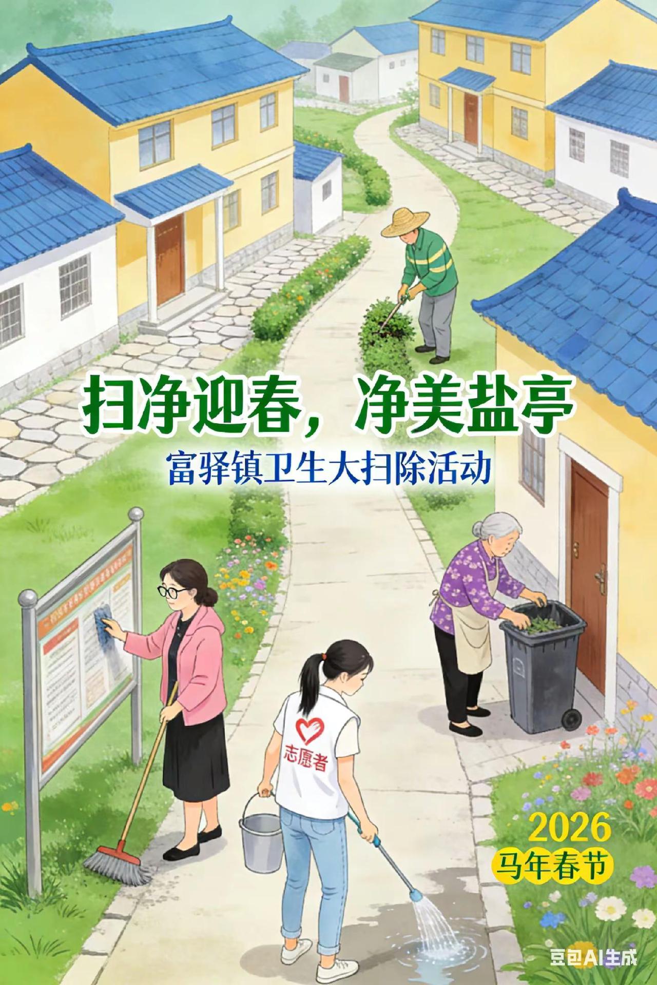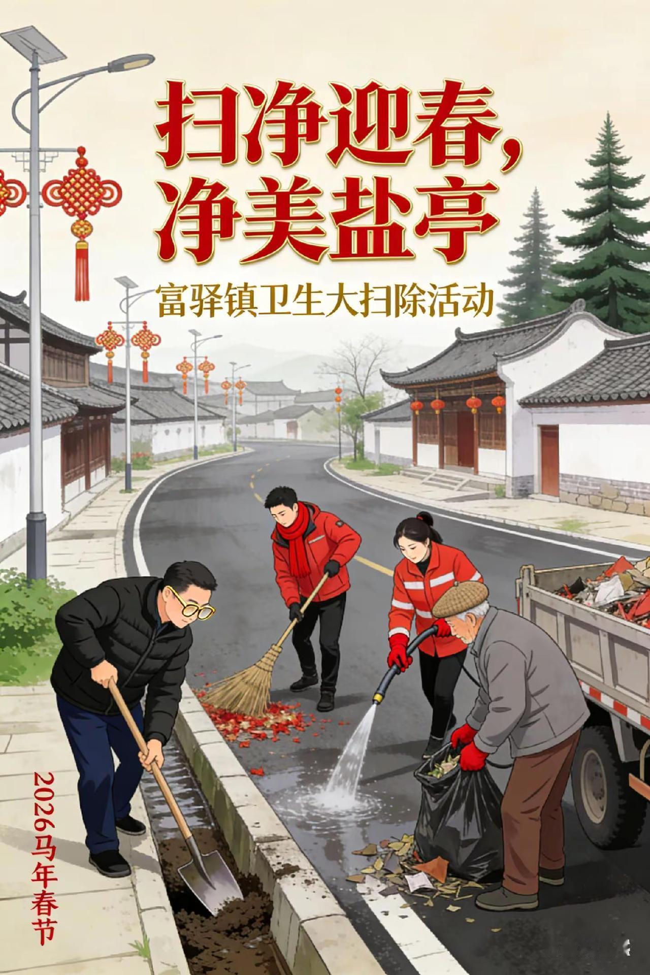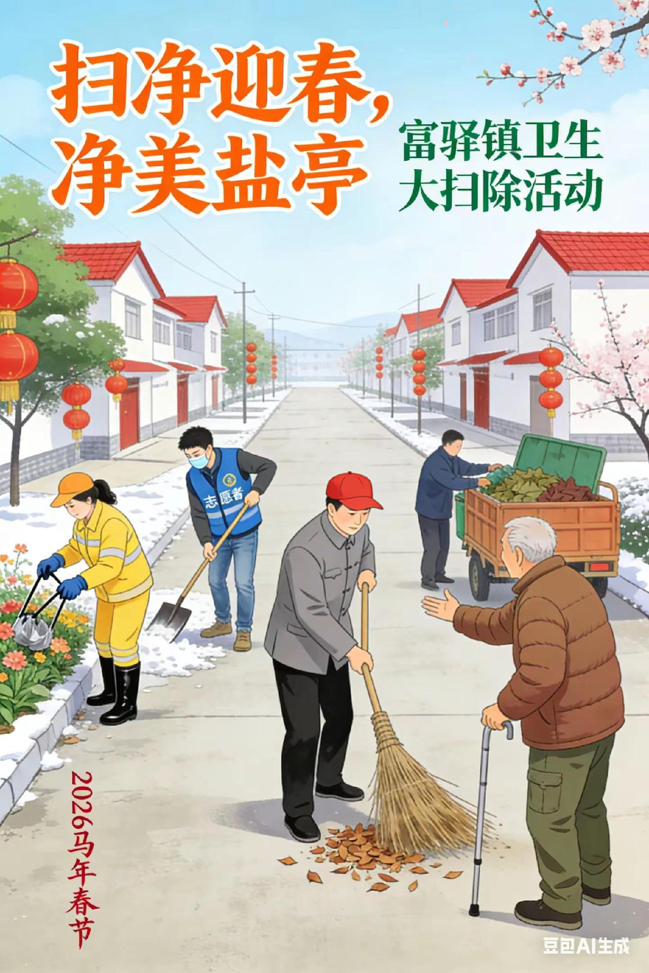 新春将至,富驿镇组织25个村(社区)开展“扫净迎春,净美盐亭”卫生大扫除活动,以整洁环境迎接马年春节。村干部、党员志愿者、环卫人员及群众代表齐上阵,聚焦乡村道路垃圾、卫生死角、堆物堆料、非法小广告等重点问题,以实际行动改善辖区人居环境,营造整洁祥和的佳节氛围。盐亭