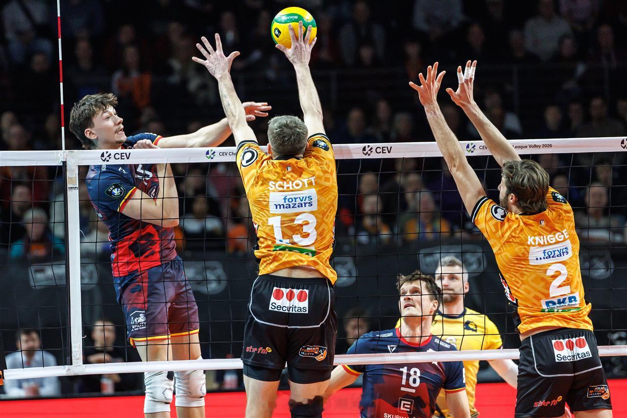【杰克·汉斯21分 男排欧冠柏林回收3比1布拉格】北京时间28日凌晨,2026男排欧冠 正赛小组赛第4轮,C组的德国柏林回收在主场以3-1(25-19, 23-25, 27-25, 26-24)力克捷克布拉格,收获第三胜。杰克·汉斯21分,雷歇特17分,克拉格9分;科拉托17分,L·孔蒂13分,伊赫纳特12分,尼卡切维奇、克莱尔(拦5)各8分。