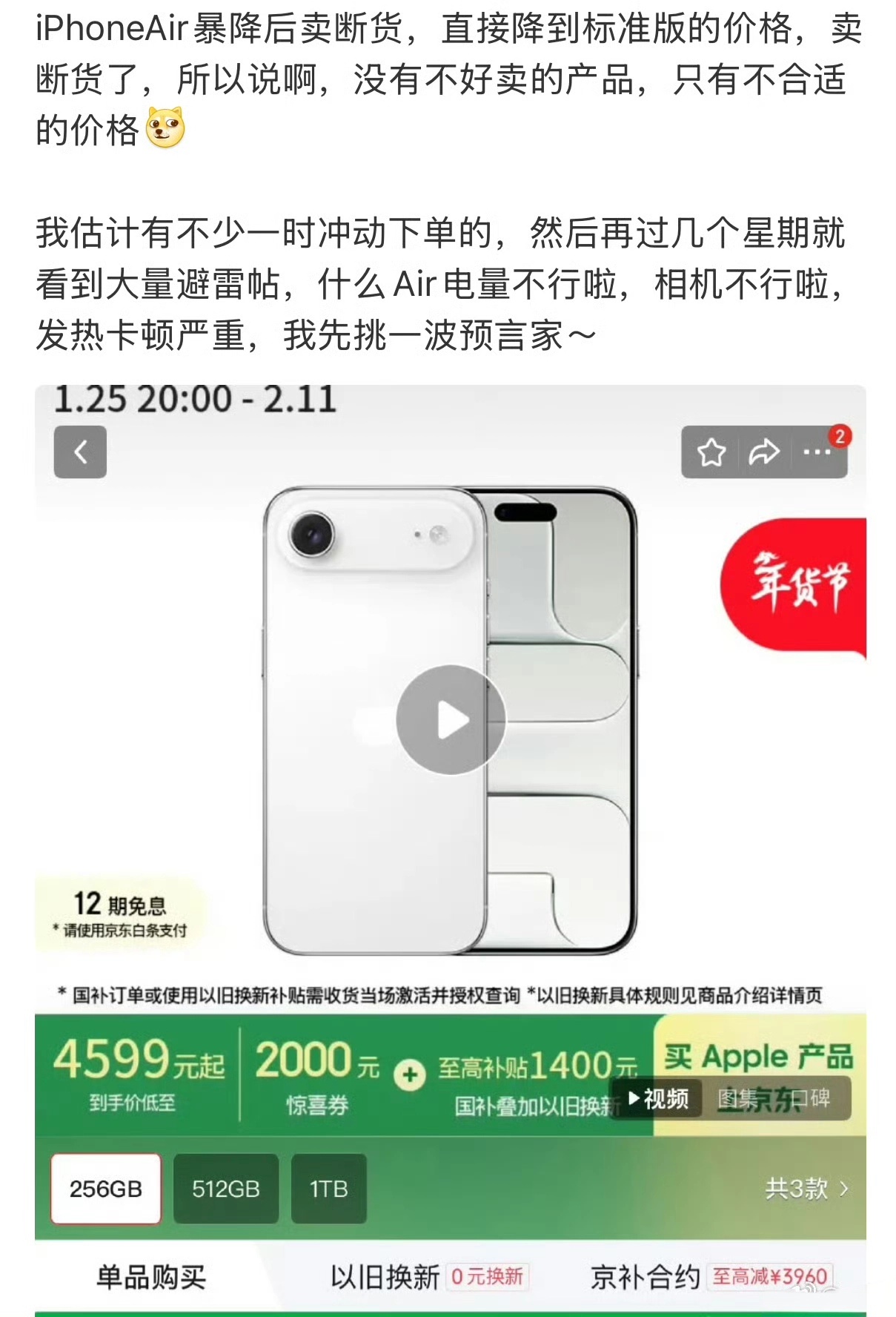 降价后的苹果Air和国产Air选哪个发布三个月跳水2500!这机器谁买谁砸手里!说不定过年还降!都说了是因为卖不出去才降价的,说明这机器不值这个价!毕竟同样都是Air,荣耀Magic8ProAir一点都不妥协,首销就超过了苹果Air,所以怎么选不用明说了吧!