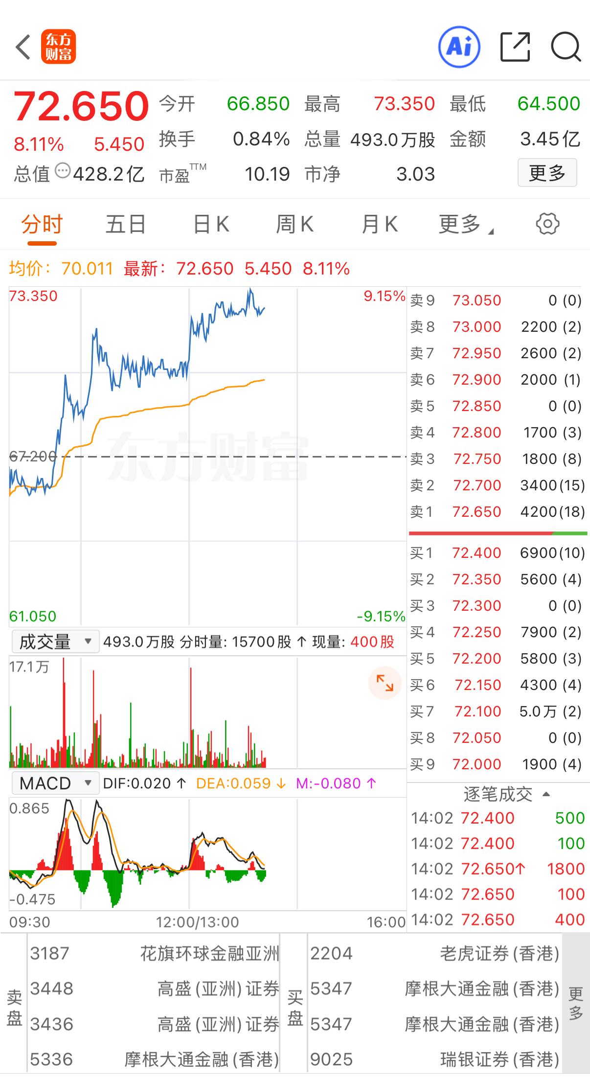 上证报中国证券网讯(记者何治民)1月28日,南山铝业国际震荡走强,一度涨超9%,截至14时03分,涨8.11%,报72.65港元/股。