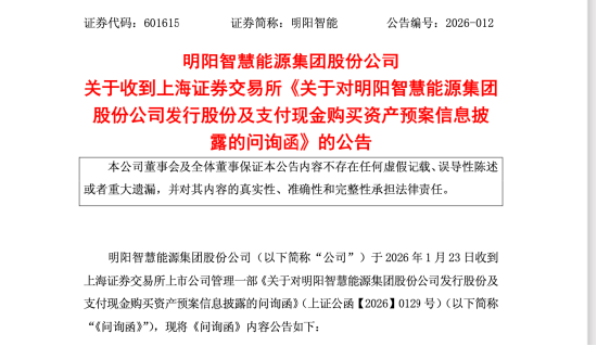 2026年1月,一纸并购预案,把明阳智能推上了市场与监管的双重聚光灯。